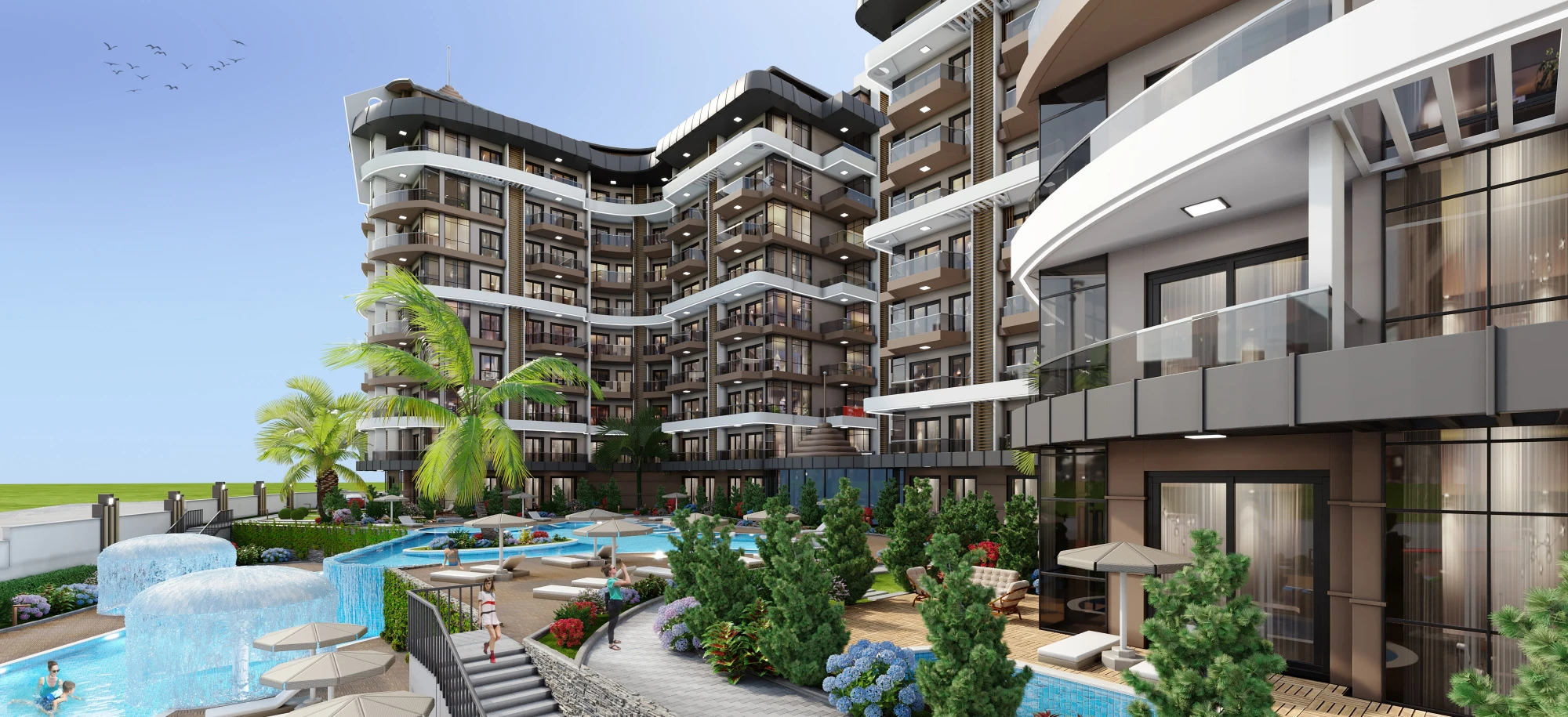 Completion dateDeliveredВuildings1Property typeNew flatArea699 — 1399 ft²Ceiling height2.20 — 2.20 mFinishingCleanParkingGroundAmenitiesBalcony, closed area, passenger elevator, swimming pool, terrace, near sea