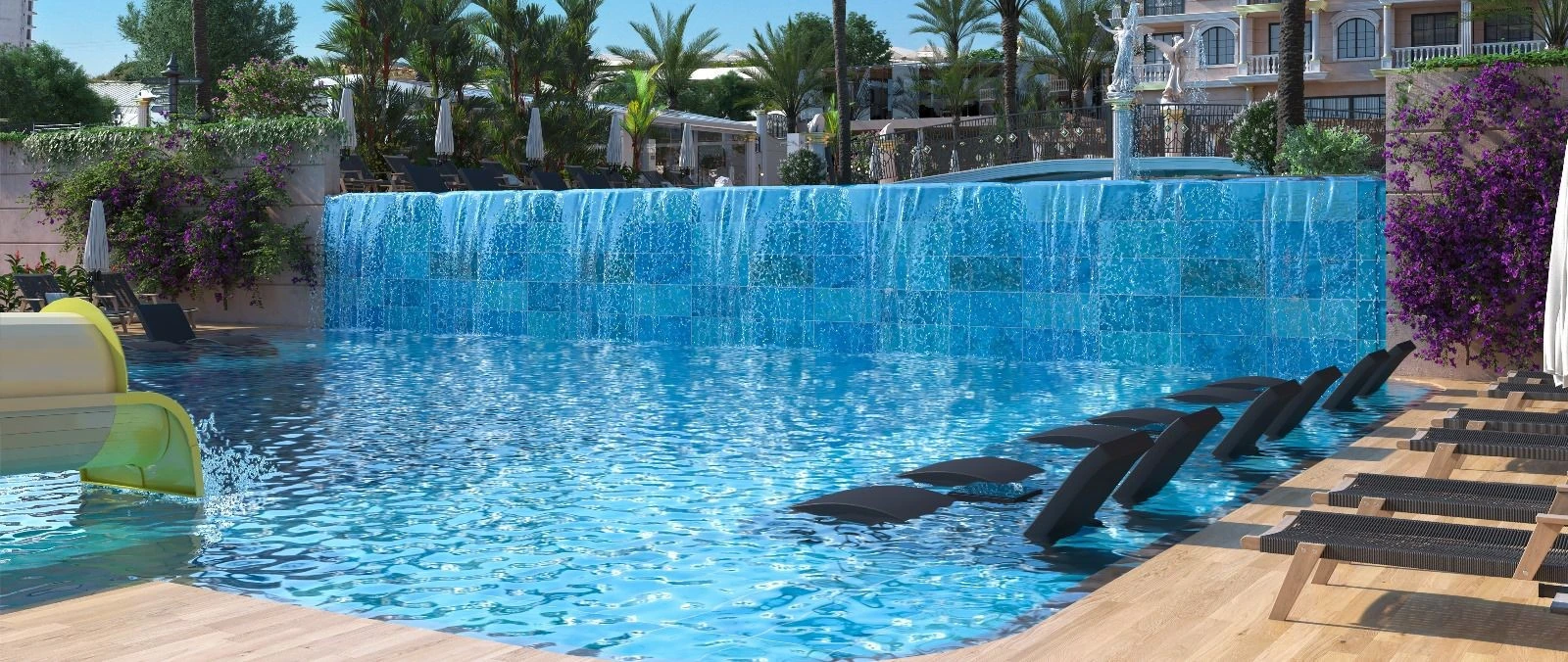 Balcony, closed area, passenger elevator, swimming pool, terrace