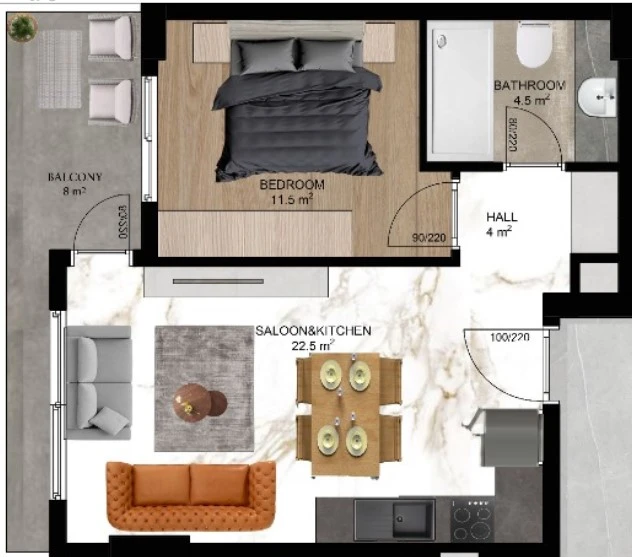 Apartment in the Demirtas area. The yield is 10%! Residence permit! It is perfect for both living and renting.