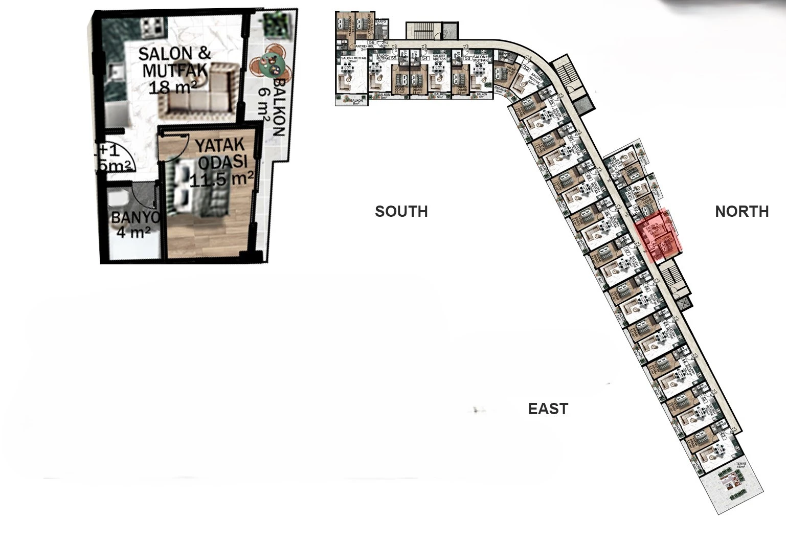 1-r. new flat, 511 ft²