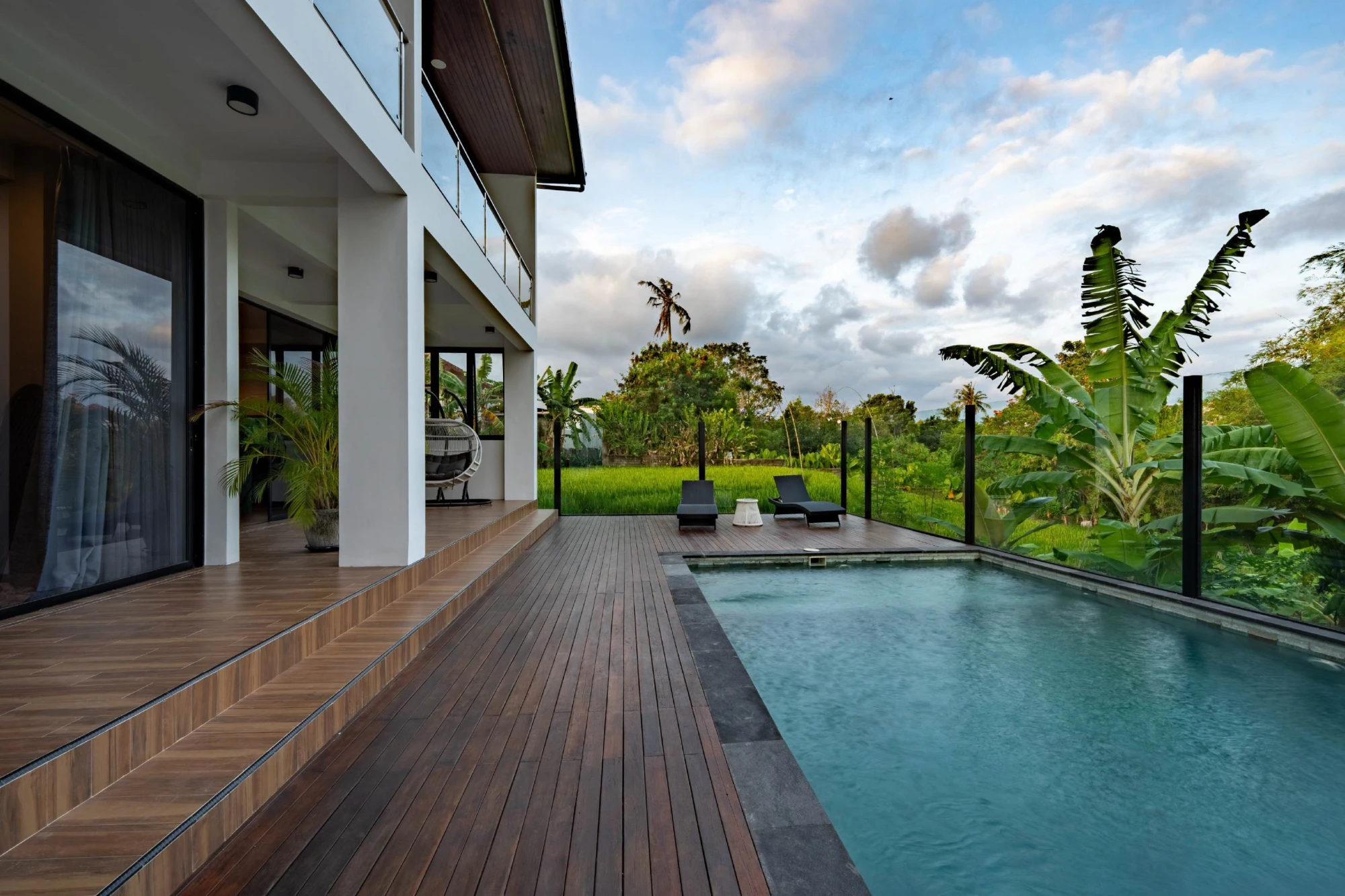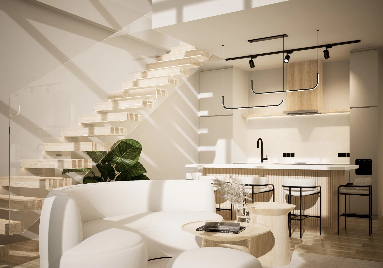 The modern villa with modern furniture creates an atmosphere of comfort and coziness.