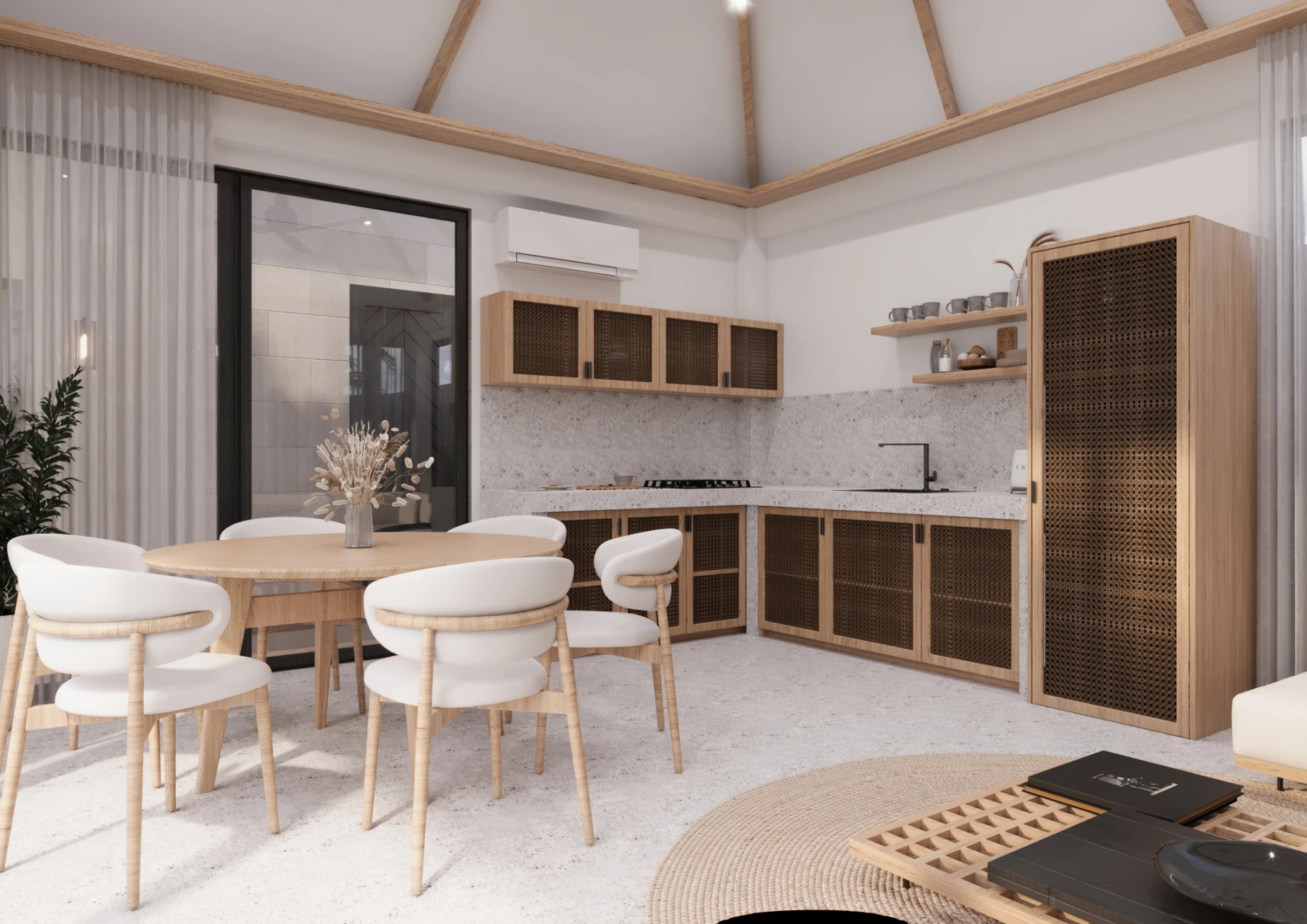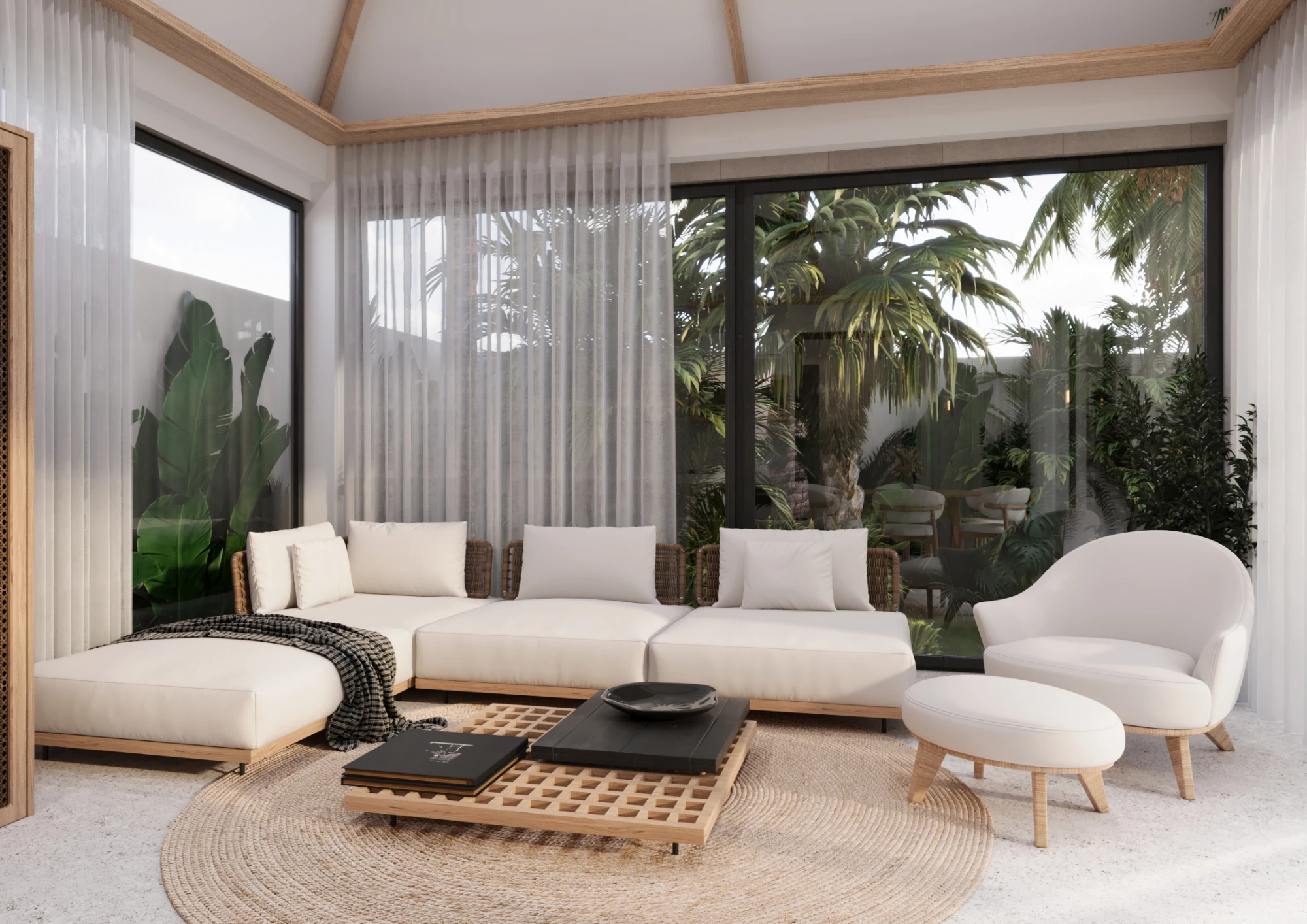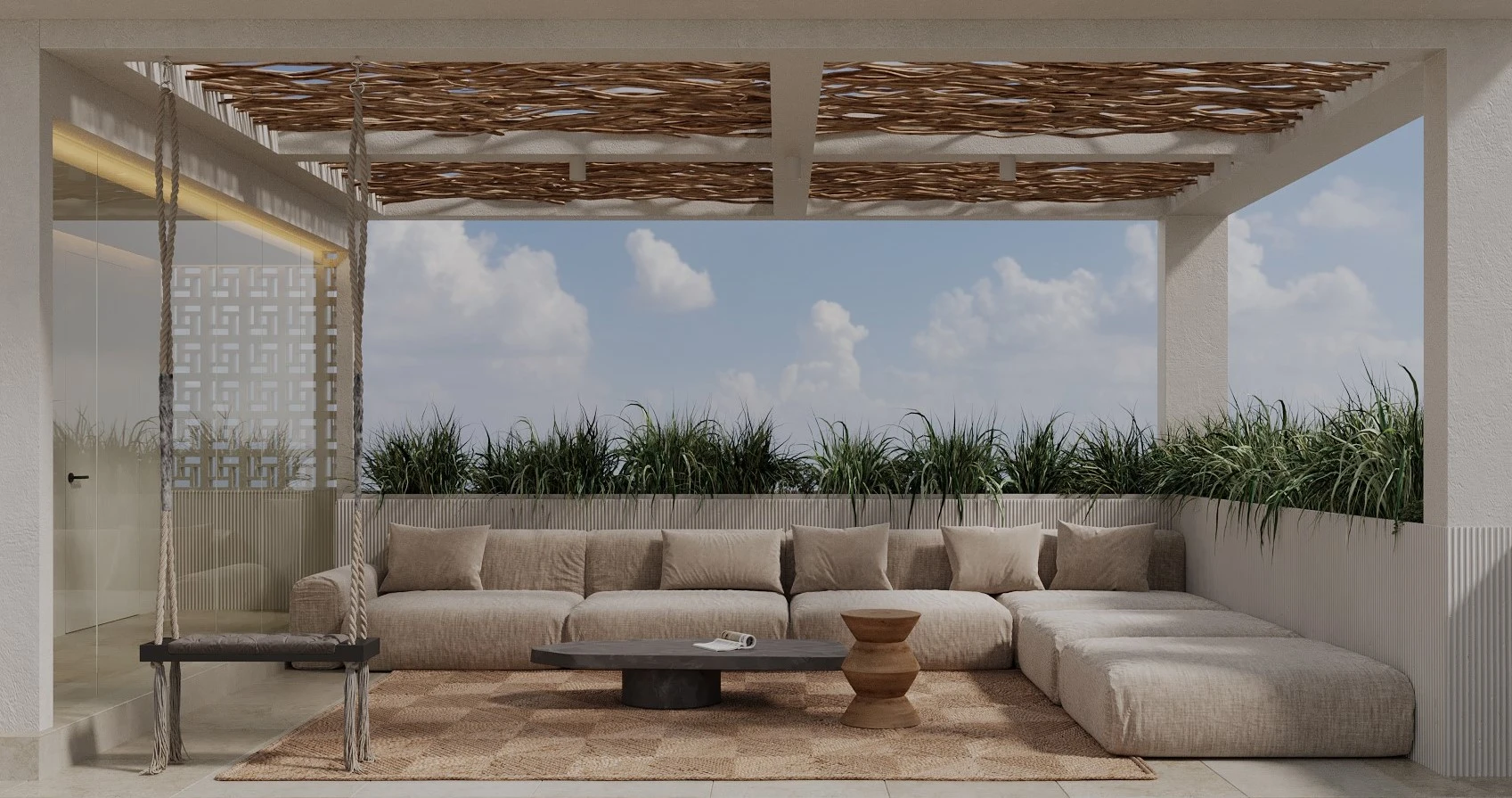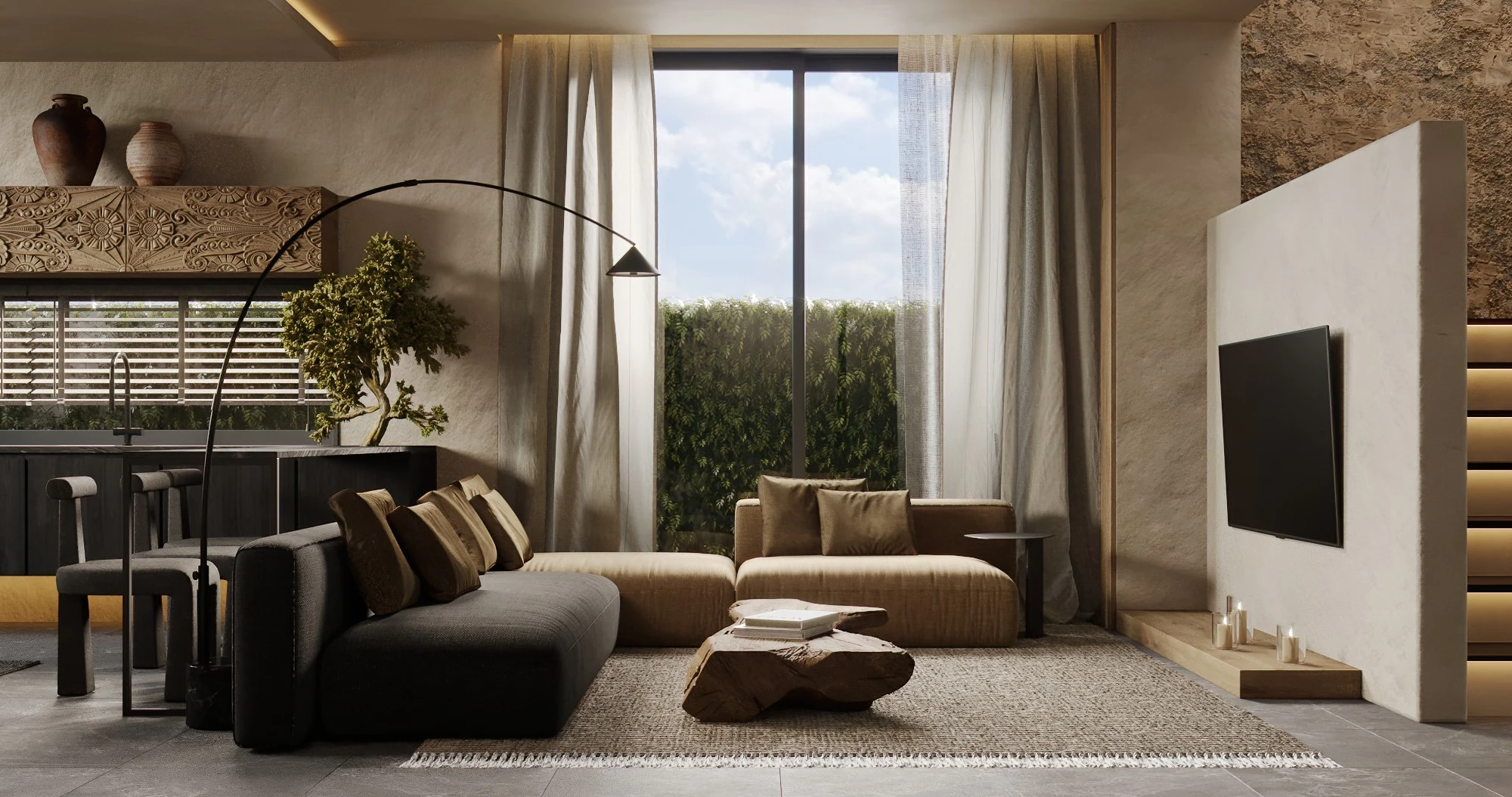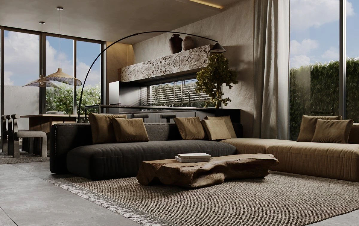 Minimalistic architecture with panoramic glazing. Natural materials, thoughtful ergonomics and great attention to comfort.