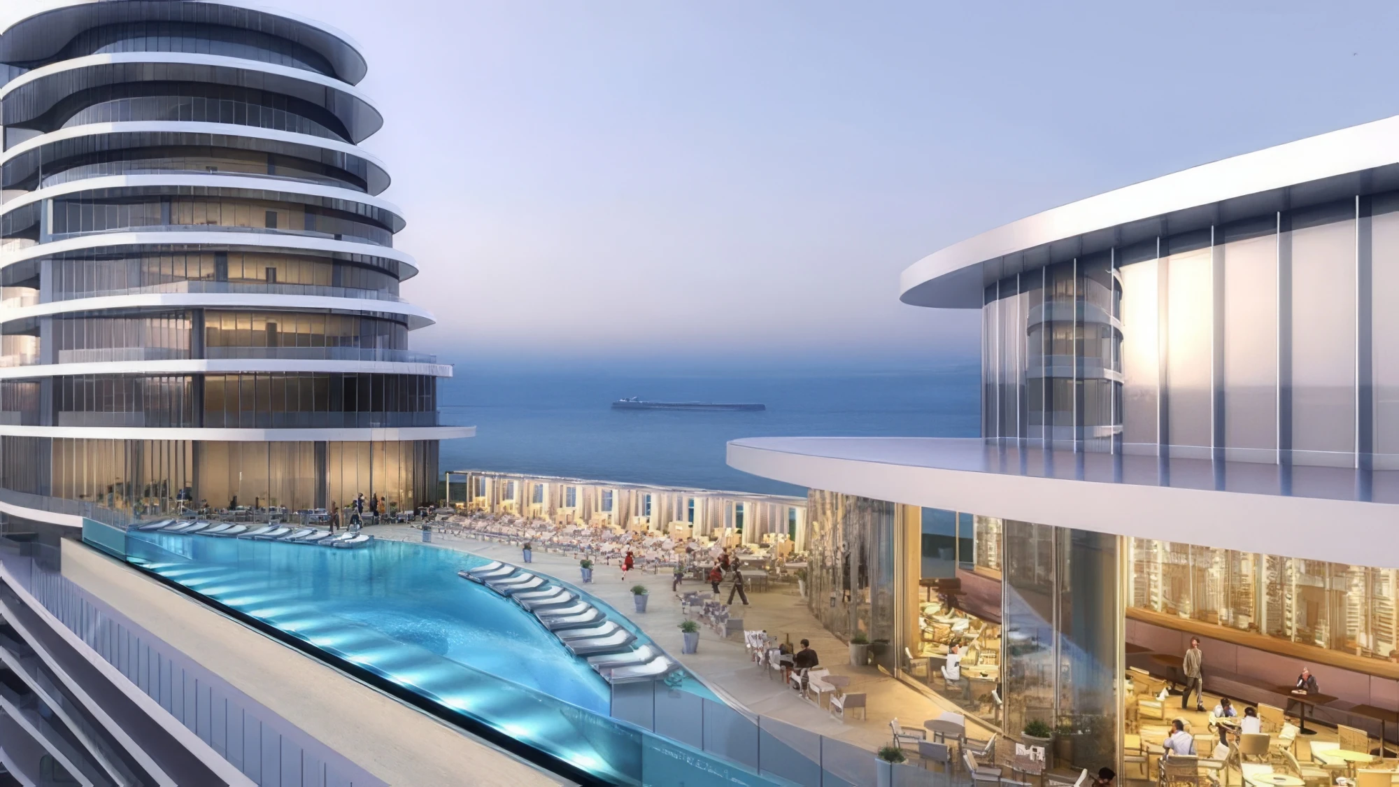 Balcony, freight elevator, passenger elevator, swimming pool, terrace, concierge
