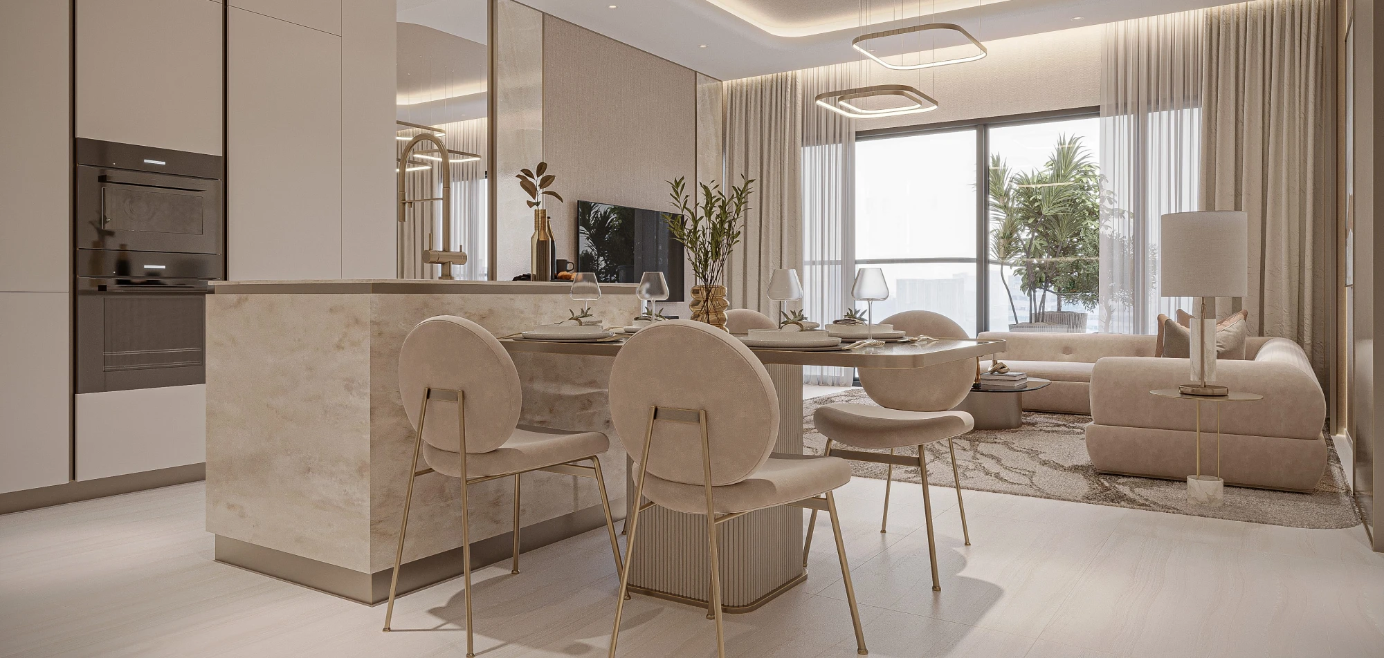 Pelagos is a new residential development in the heart of Dubai Marina, combining elegant design, stunning yacht views, and resort-style comfort. The apartments are crafted for those who value style, privacy, and proximity to the sea. Every detail is thoughtfully planned: large panoramic windows fill the interiors with natural light, while soft tones and natural materials create a calm, sophisticated atmosphere.