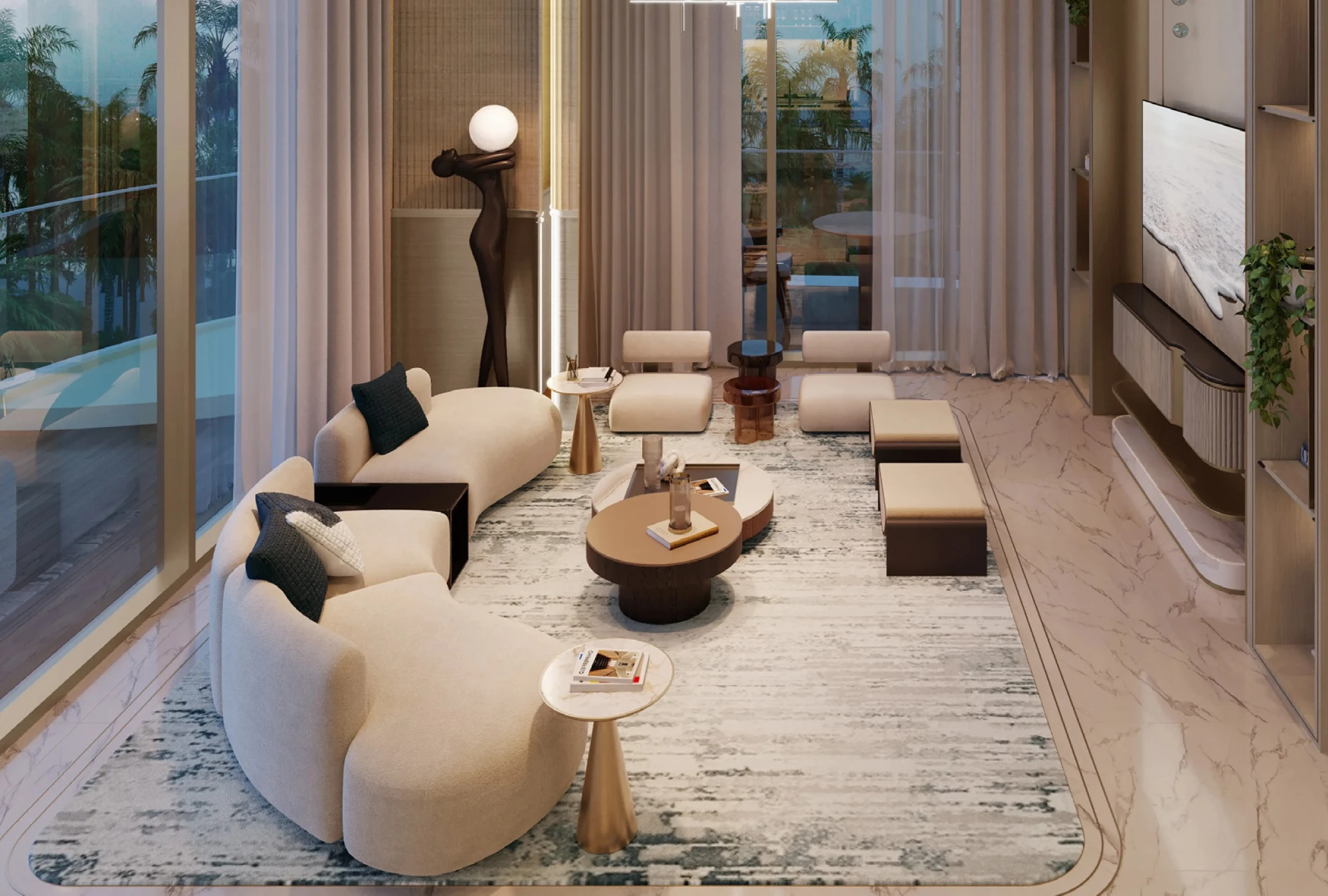 Amenities: swimming pools with recreational areas, fitness centers, spa and wellness centers, as well as barbecue and picnic areas. Playgrounds are provided for children, and 24-hour security and video surveillance ensure the safety of all residents.