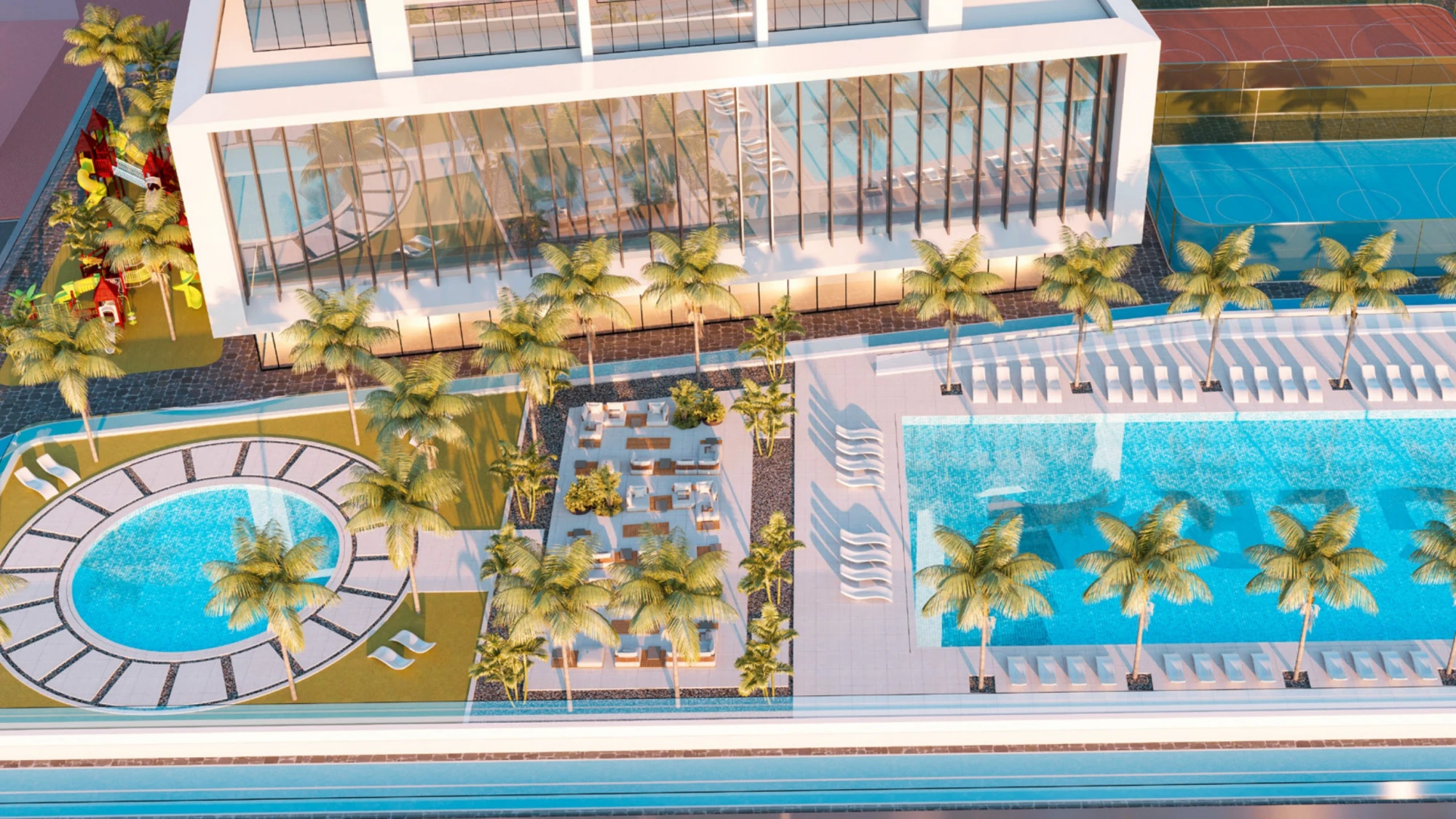 Amenities: swimming pool, fitness center, yoga areas, children's pool and playground, sauna and steam rooms, sports courts, tracks for running and bicycles, barbecue areas and lounge spaces. Security and video surveillance 24/7, parking 7 levels.