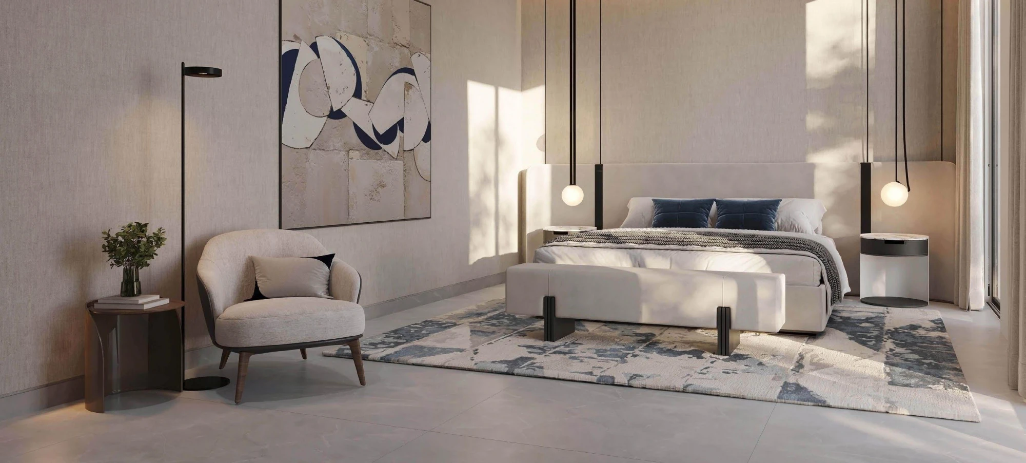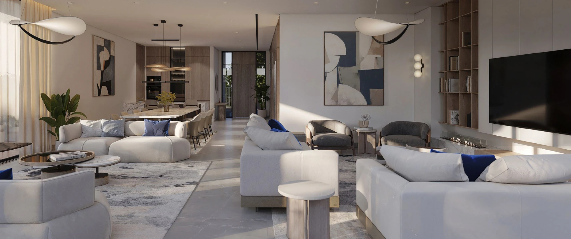 Interiors are finished in neutral tones, providing a calm and adaptable living environment, complemented by quality materials.