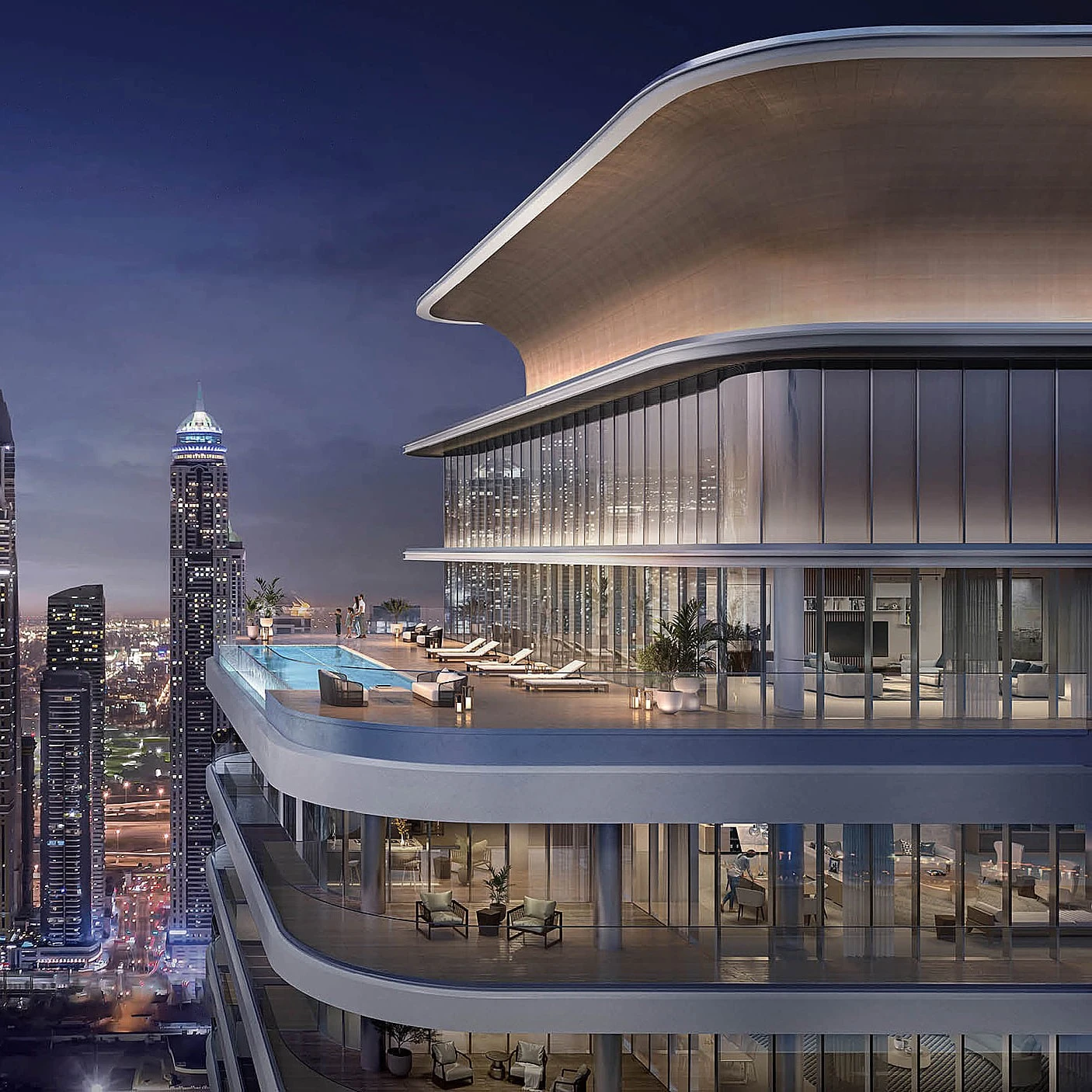 Amenities: health and fitness rooms, elevated green terraces and seating areas, two panoramic observation decks, upscale retail and F&B outlets, smart access systems, valets and secure multi-level parking.