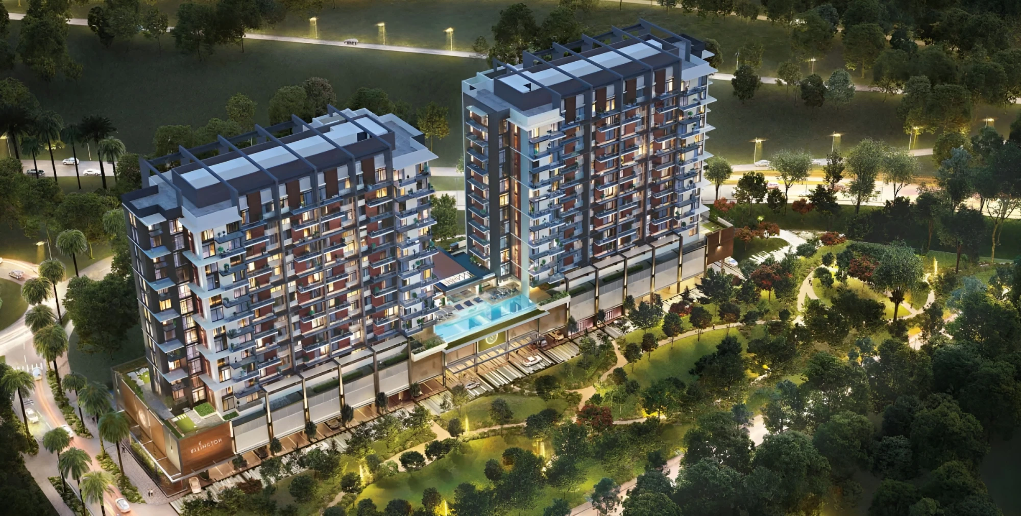 What property types are available? — 1–3 bedroom apartments and 3-bedroom townhouses.