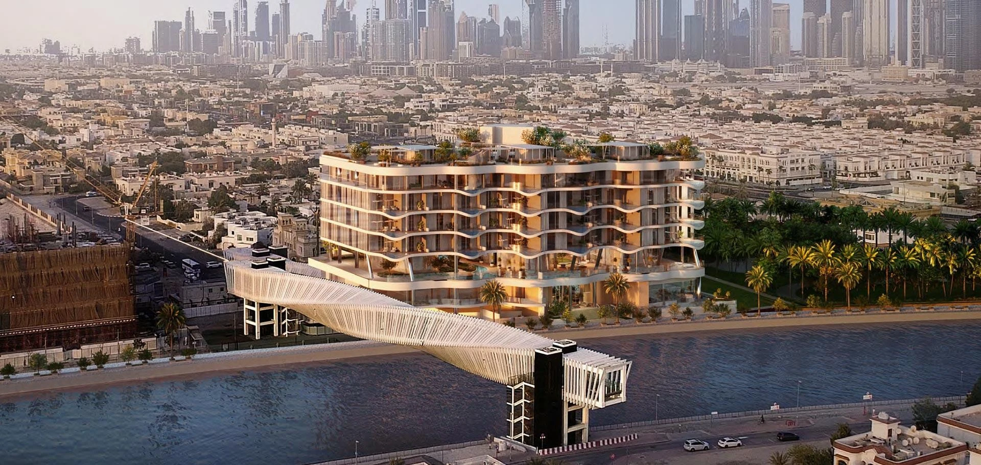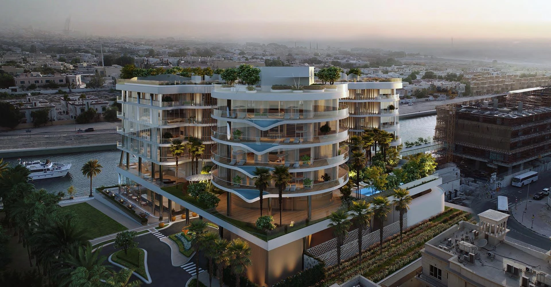 Designed by the world-renowned firm Arquitectonica, the building features modern minimalist architecture with smooth lines and panoramic facades. Interiors are created by Meyer Davis Studio, showcasing light tones and natural materials for a refined, serene atmosphere. Each residence comes with expansive terraces, floor-to-ceiling windows, and private pools with stunning views of the Dubai Canal and Downtown Dubai skyline.