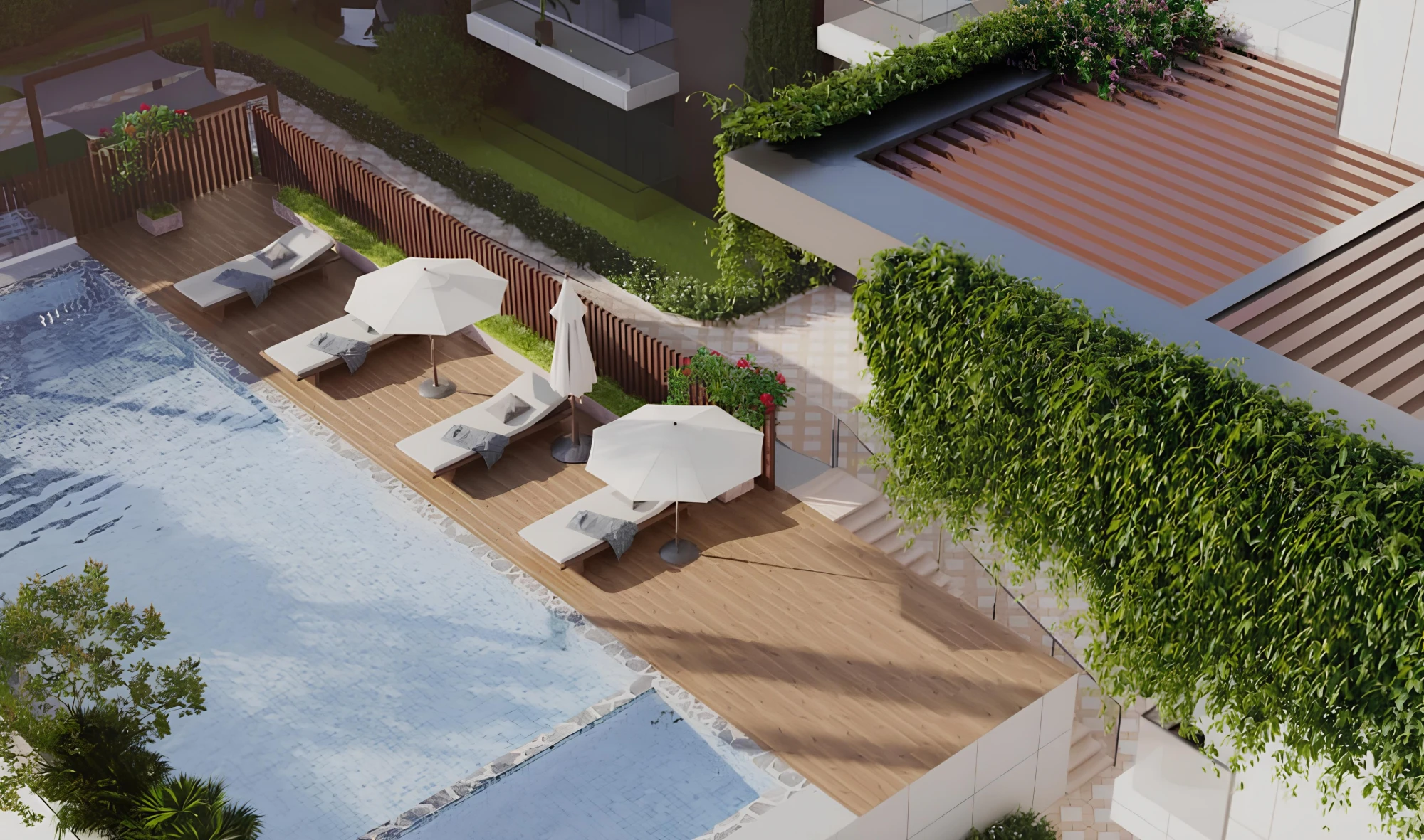 The project consists of 6 levels (G+5) and features studios and 1-, 2-, and 3-bedroom apartments. Each residence is thoughtfully designed with high ceilings, large windows, and quality finishes to create bright, spacious, and inviting interiors.