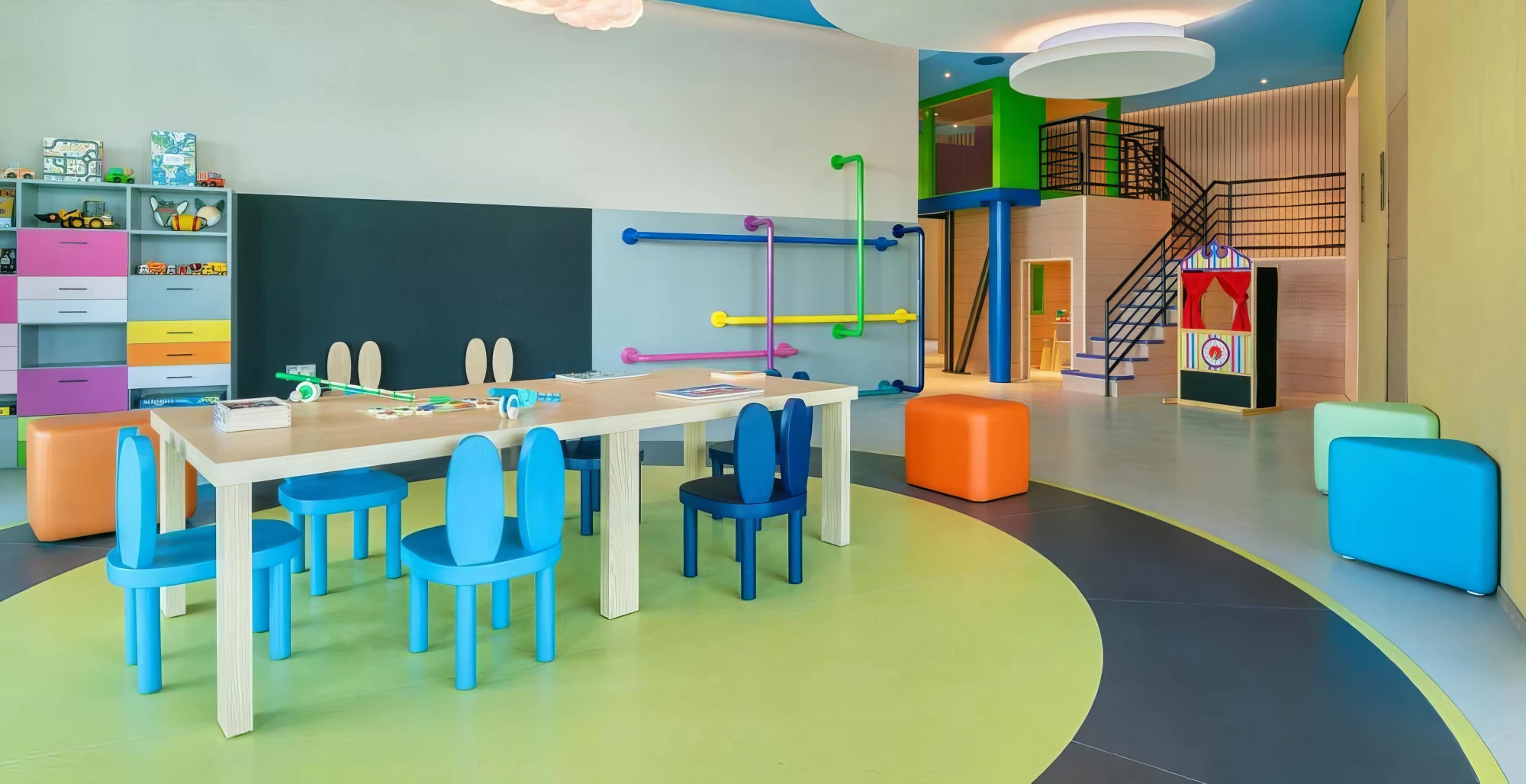 — Children’s play areas for families with kids.