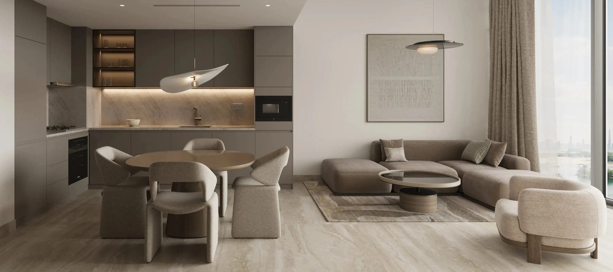 Layouts prioritize everyday comfort and functionality. Generous living areas, floor-to-ceiling windows, and well-proportioned interiors allow natural light to flow freely throughout the apartments. The design palette is light and neutral, supporting both end-user living and rental flexibility.