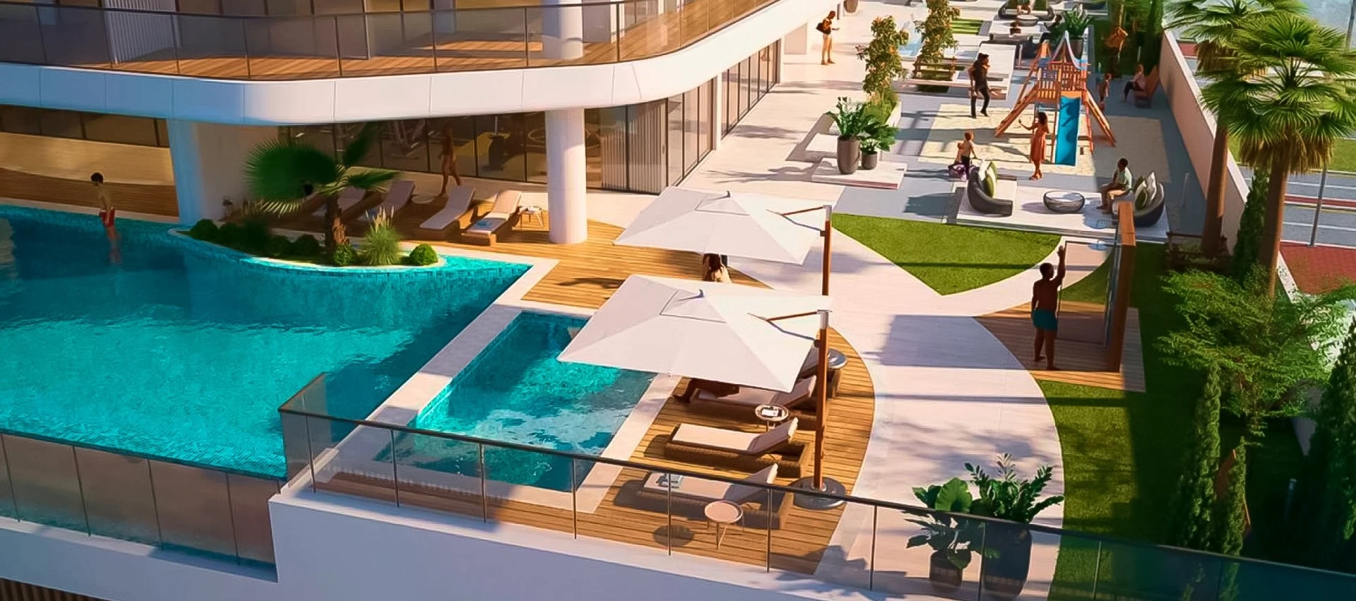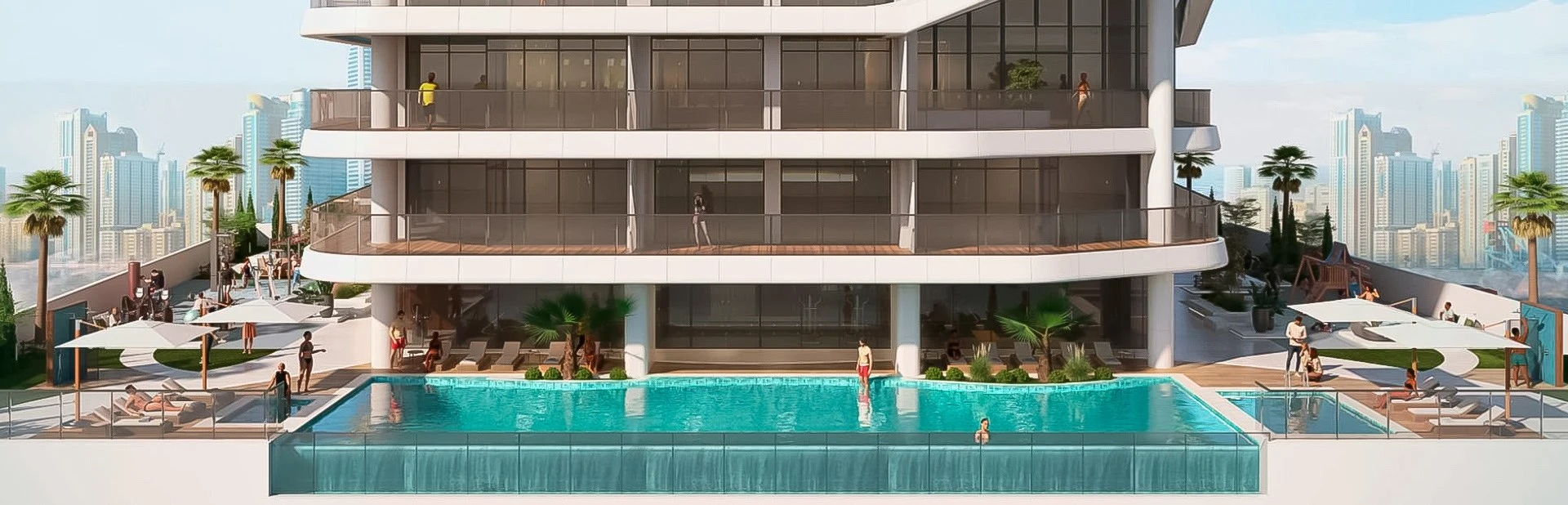 Balcony, freight elevator, passenger elevator, swimming pool