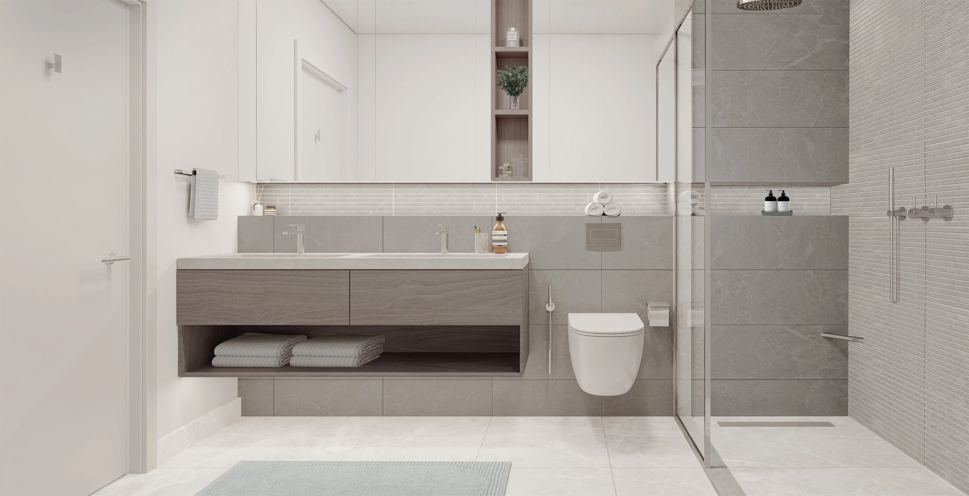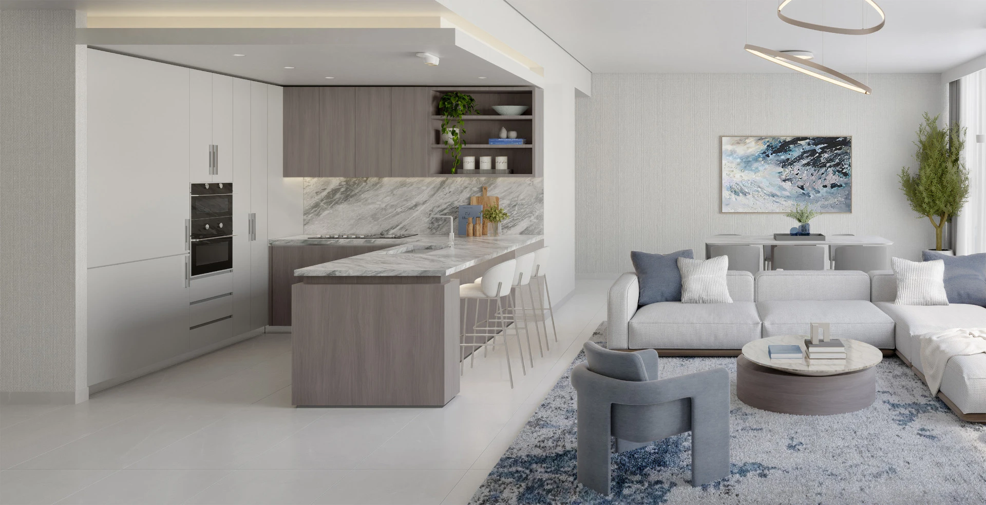 The tower’s façade is designed in a sleek contemporary style, dominated by glass and metal elements that emphasize its prestige and architectural sophistication. Interiors are finished in light tones with natural materials, premium fittings, and thoughtful lighting. Spacious layouts and floor-to-ceiling windows create an atmosphere of comfort and privacy, with impressive views of the city.