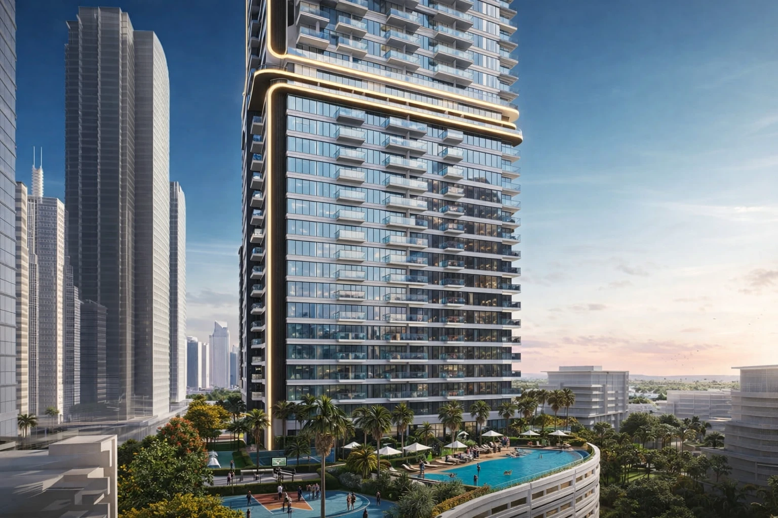 The Harbour Gate complex, located in Dubai Creek Harbour, consists of two buildings with luxury apartments.Beautifully decorated towers in a modern style will provide residents with all the amenities for a comfortable stay. A children's playground, a cafe, a relaxation terrace, a fully equipped gym and an infinity pool are available to residents of Harbour Gate. Residents will also enjoy the premium steam room, sauna and spa.