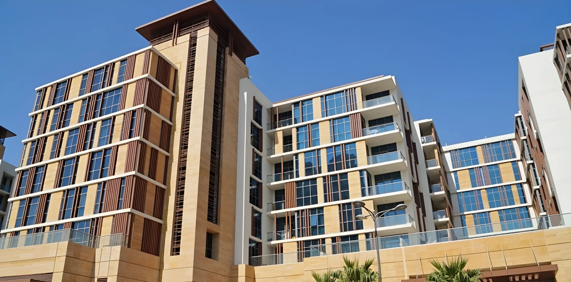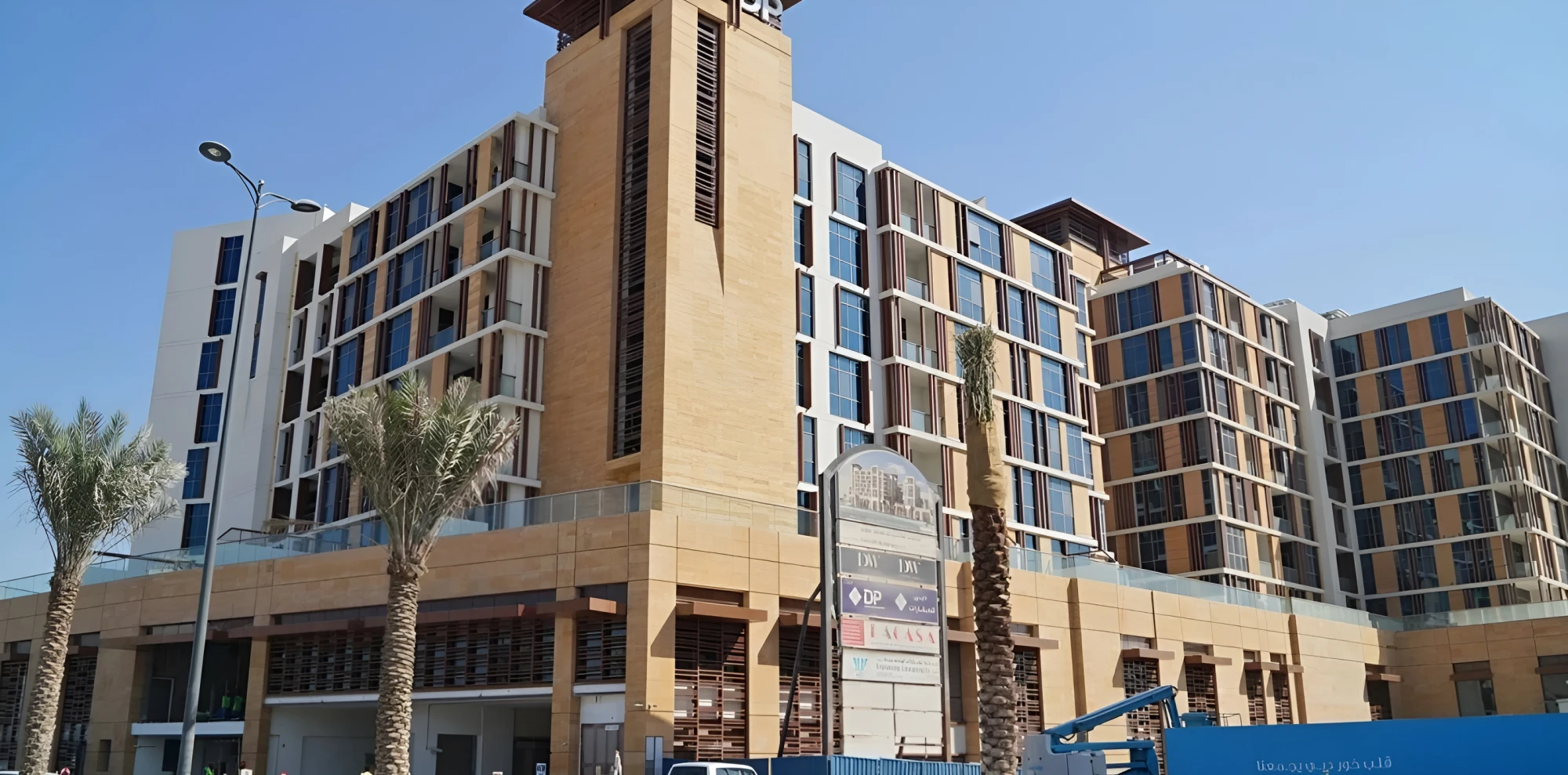 The apartments in the tower overlook an artificial harbor, which allows residents to admire the view of the embankment. Designed by Emaar, Marina Quays West Tower is designed by Arif & Bintoak, a renowned architectural firm in Dubai. Residents can enjoy a variety of amenities and amenities for living in the complex. These are table tennis halls , squash courts , an aerobics studio and a cinema. There is also a safe playground and a separate pool for children, as well as separate barbecue areas and paths in the yard for jogging or walking.