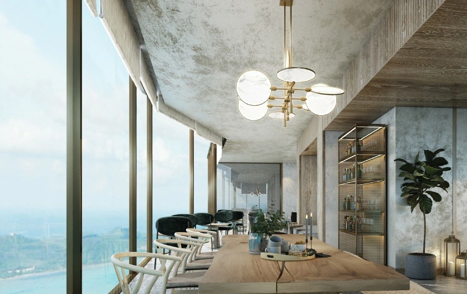 – on the 55th floor there is a restaurant, bar, lounge area;