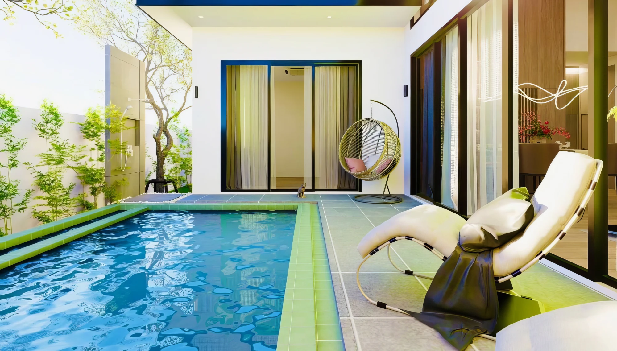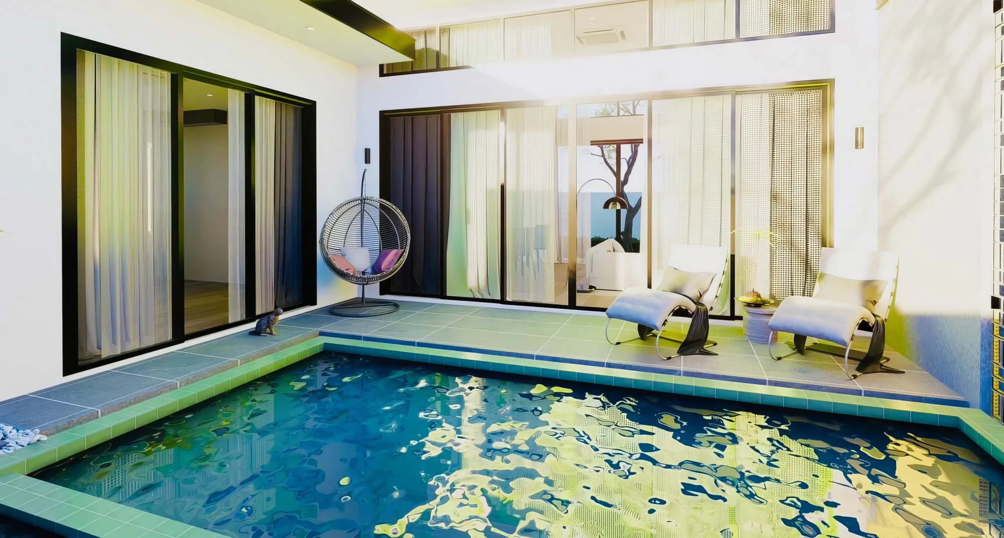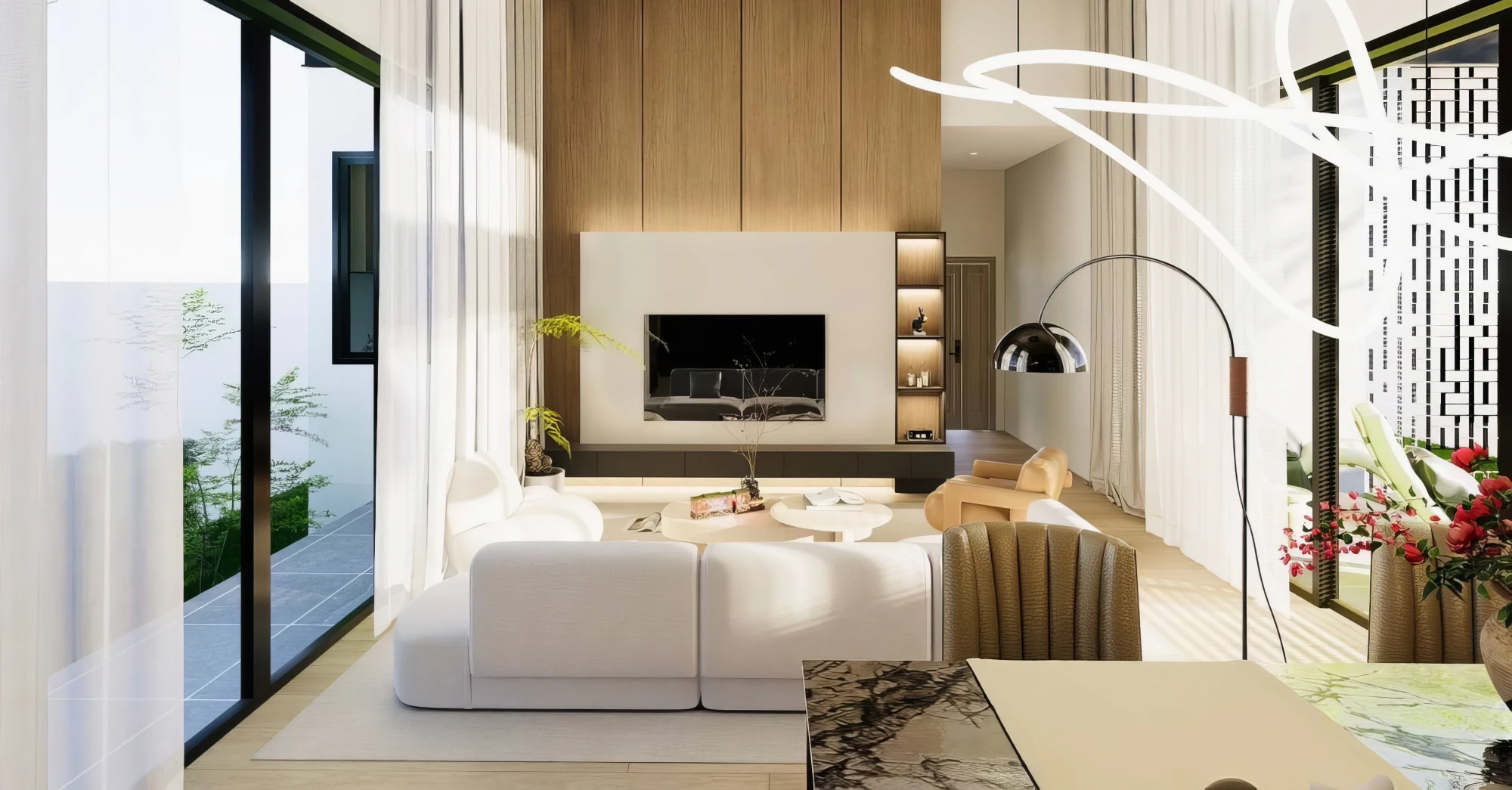 The villas are designed in a contemporary style, using light natural materials and open spaces. Floor-to-ceiling windows create seamless transitions between the spacious living rooms, terraces, and poolside areas. Each layout is planned with a focus on privacy, functionality, and comfort.