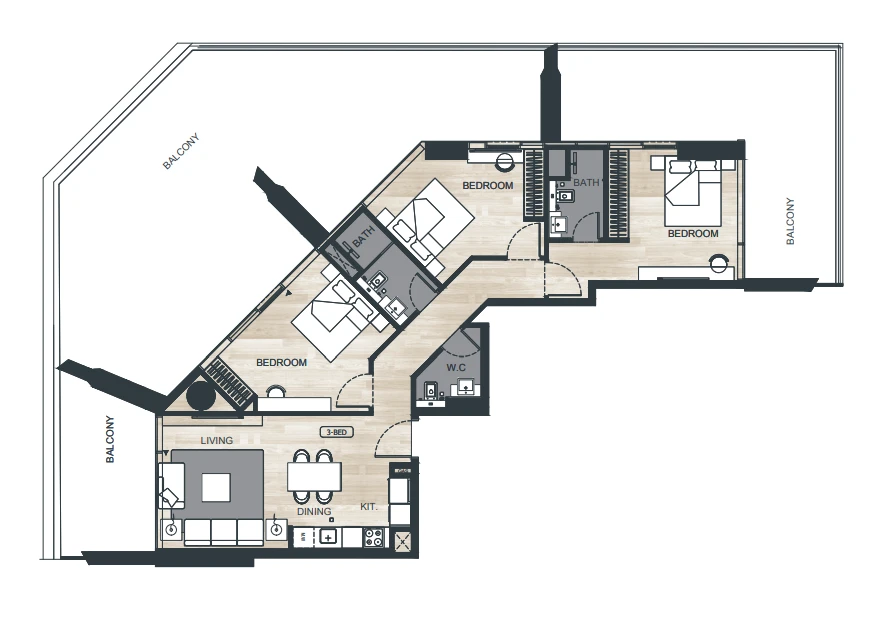— Property type: three-bedroom apartments