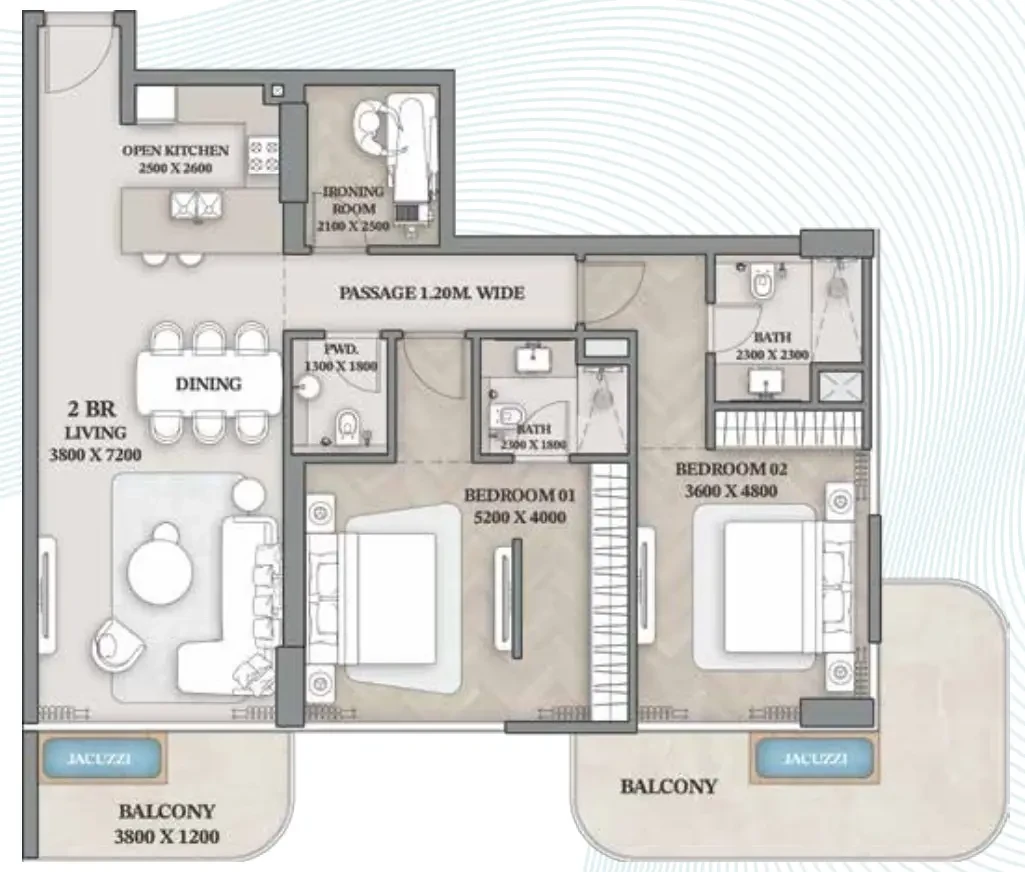 2-Bedroom Apartment in Naya 3, District One — 1,437.74 sqft by Crystal Lagoon.
