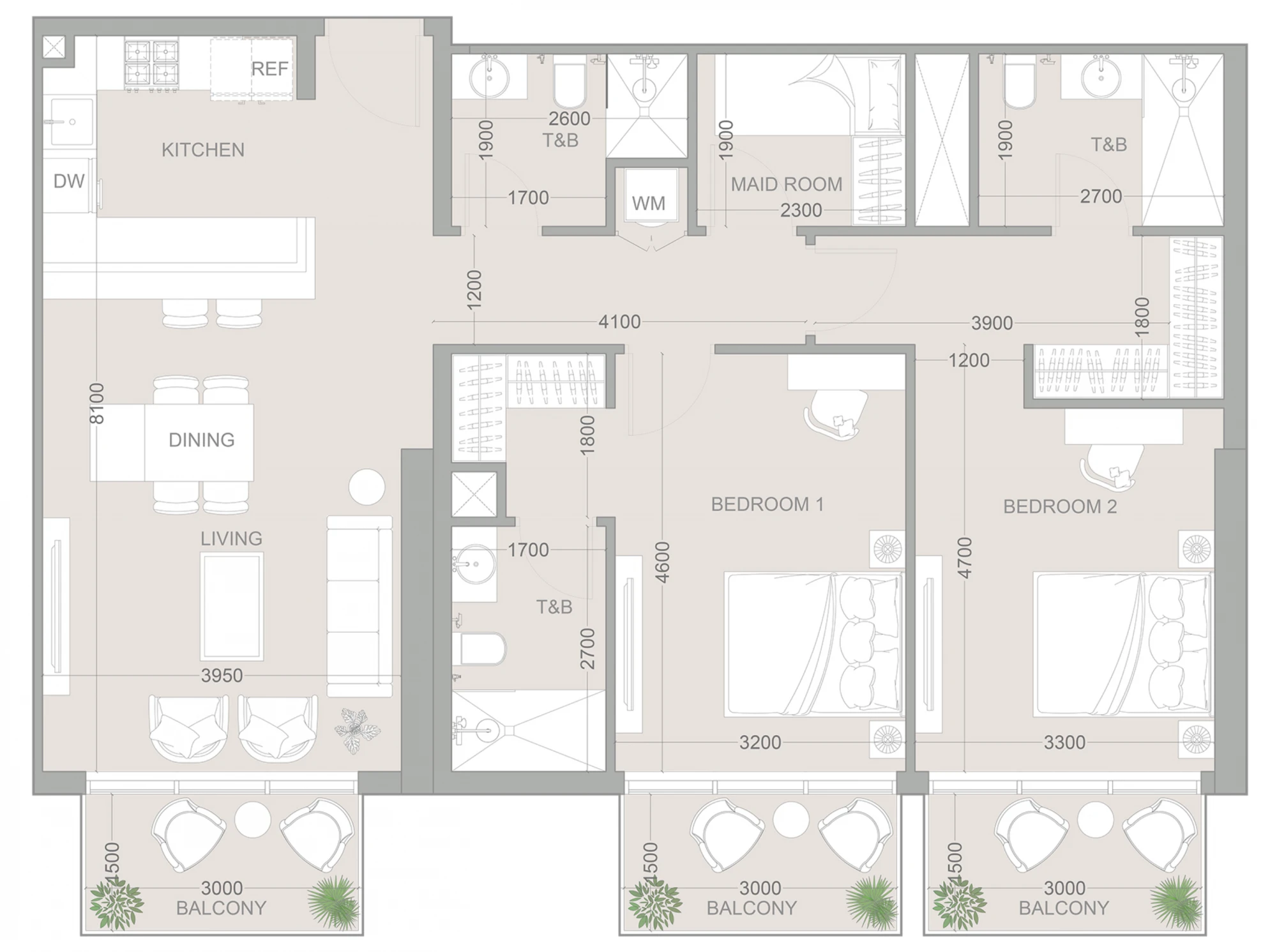 Amenities: 24-hour security, rooftop garden, park, business center, state-of-the-art health center, landscape pool, jogging track, mini golf course, tennis court, spa and more.