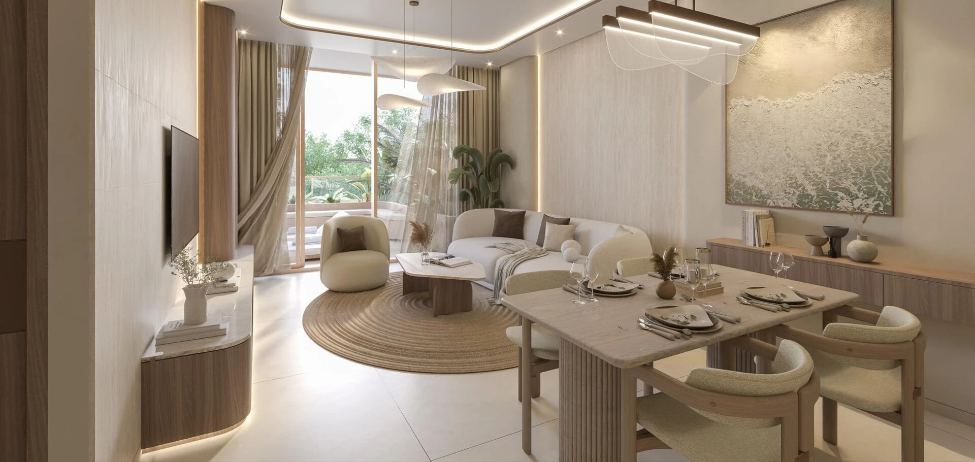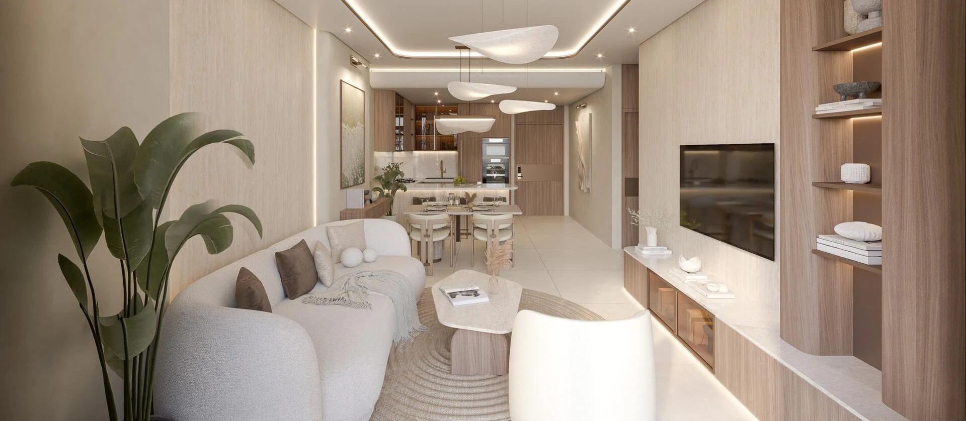 The layout of the apartment features a spacious living room with dining area, modern fitted kitchen and bathroom with top-of-the-line fixtures and fittings. Floor to ceiling panoramic windows and spacious balconies overlooking Dubai Canal.