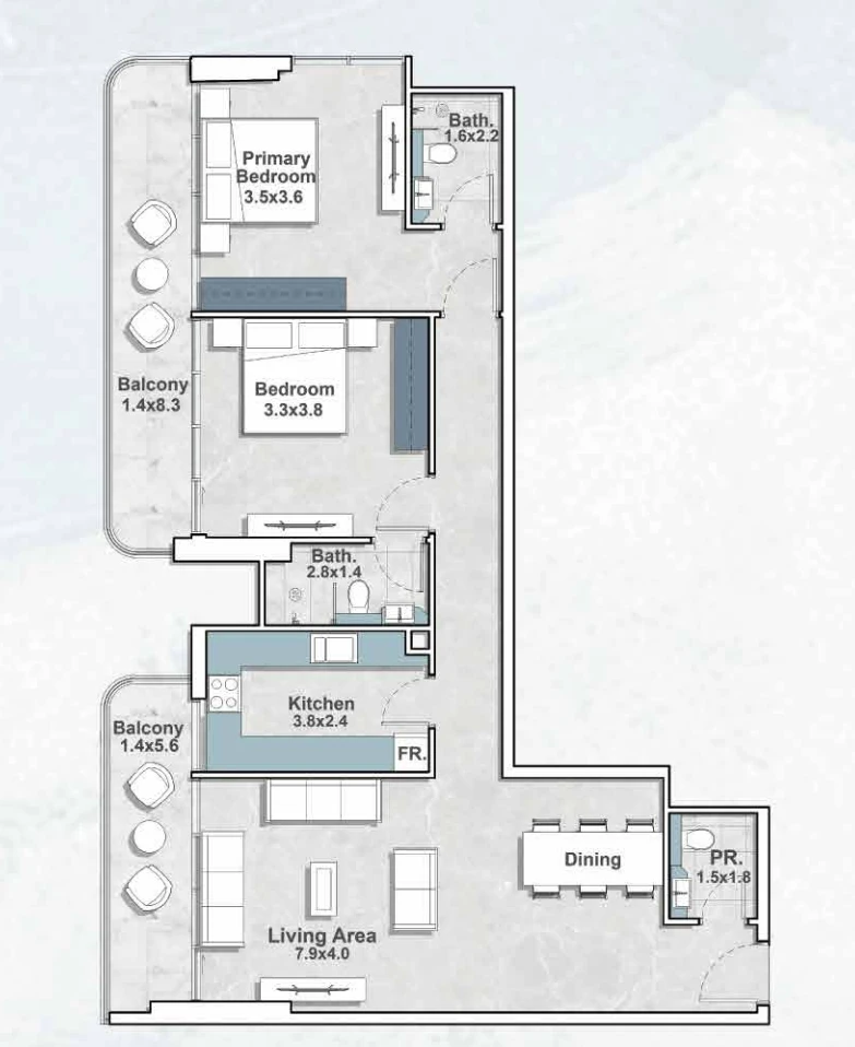 Property typeNew flatBuilding typeMonolith frameRooms2Restrooms1Area1291 ft²Floor3 / 26Ceiling height2.20 mFurnitureKitchen onlyFinishingRepair from DeveloperCompletion date4nd 2026House typeMonolith frameWindow viewRoadParkingGroundApartmentsYesAmenitiesPassenger elevator, swimming pool, balcony