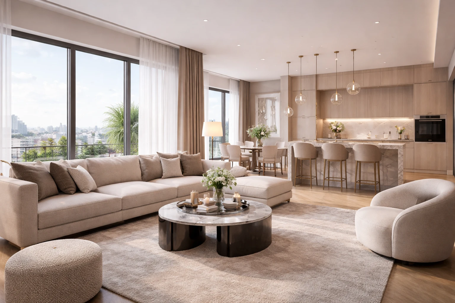 Conveniences: A 200-meter infinity pool, a 170-meter lounge, a private rooftop bar, a cinema, a private recording studio, a game room, meeting and coworking spaces, guest apartments, a spa and wellness center, private access to the beach, a variety of restaurants and shops.