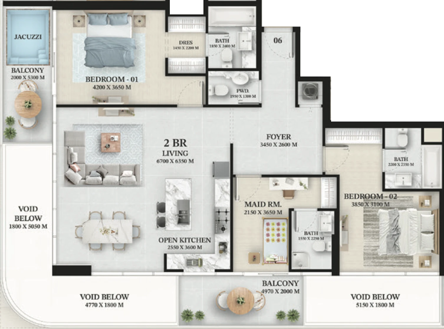 Amenities: infinity pool with stunning views, state-of-the-art gym with modern equipment, sports courts, walking areas, playgrounds for children, BBQ areas, open space for relaxation, zen garden, outdoor theater.