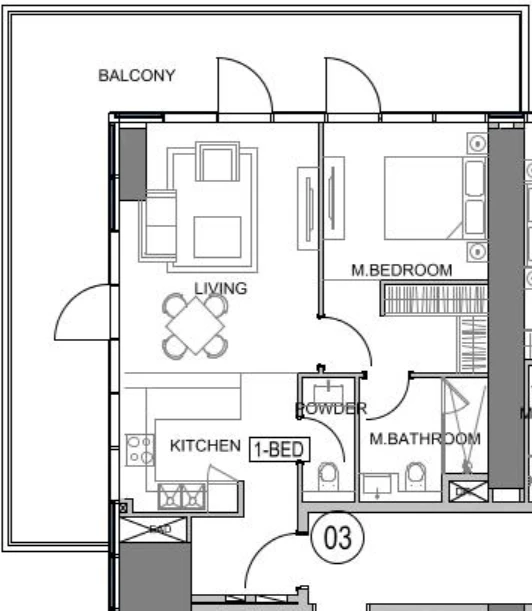 1-r. new flat, 1033 ft²