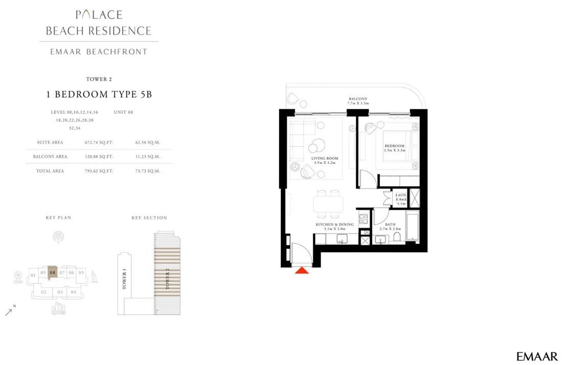 Residents will be able to reach some of Dubai's key neighborhoods on foot. For example, Dubai Marina is a 35-minute walk and Jumeirah Beach Residence is a 50-minute walk, while Dubai International Airport is only a 35-minute drive away.
