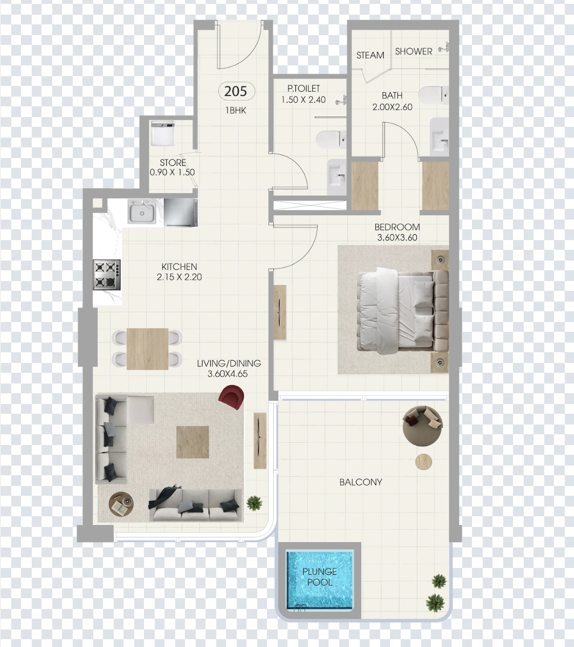 Balcony, freight elevator, passenger elevator, swimming pool