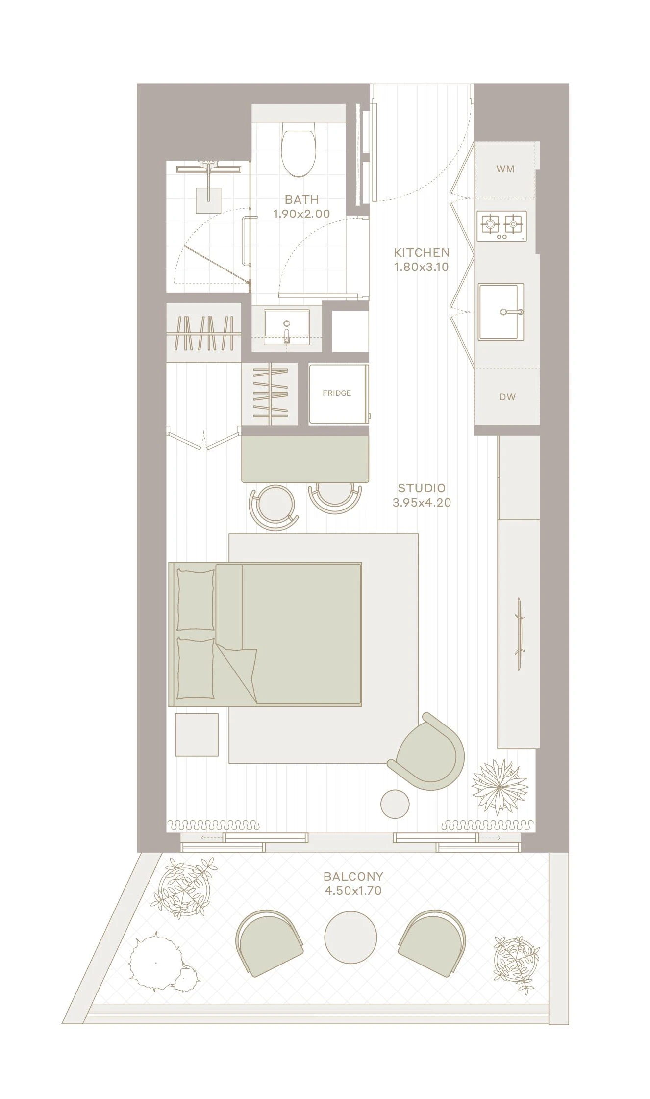 Studio, 387 ft²
