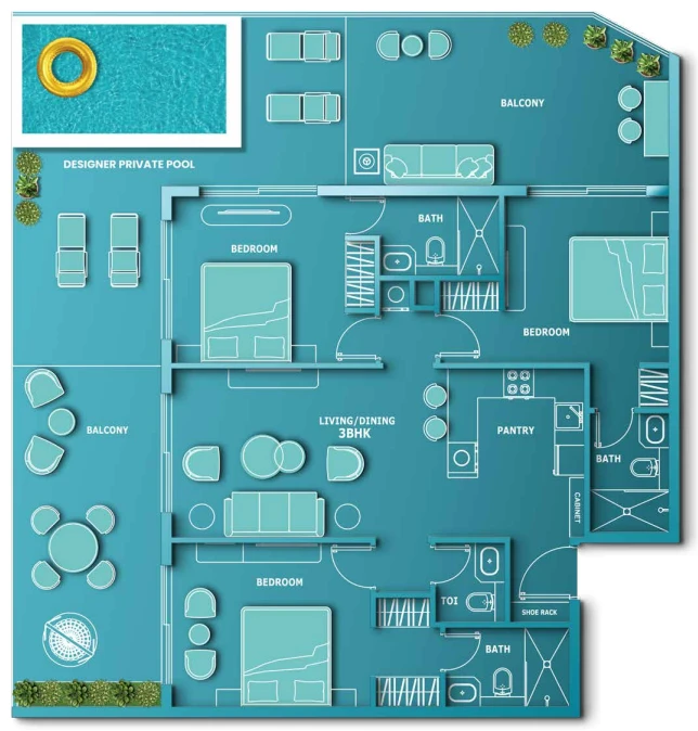 Balcony, concierge, passenger elevator, swimming pool