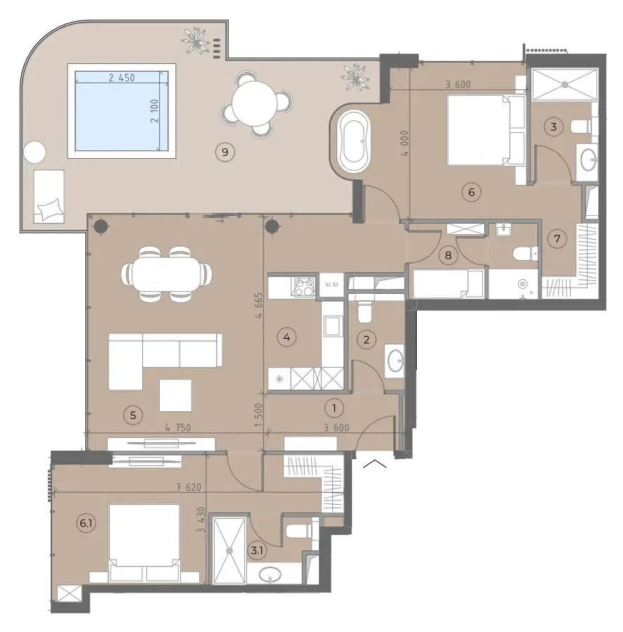 3-r. new flat, 1679 ft²