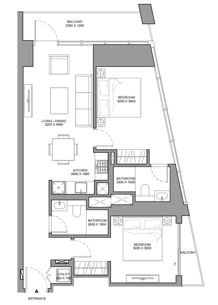 – Oversized format — rare for 2-bedroom apartments;