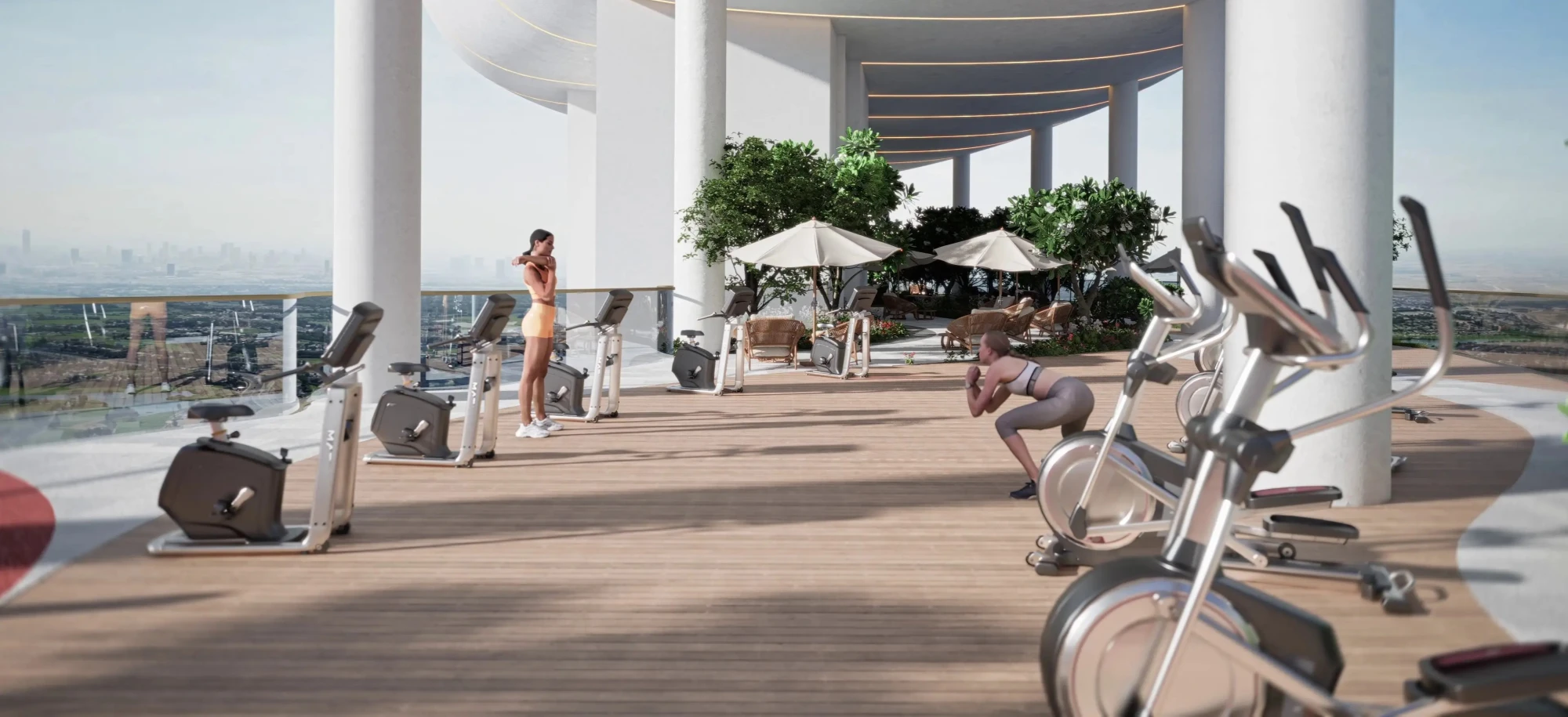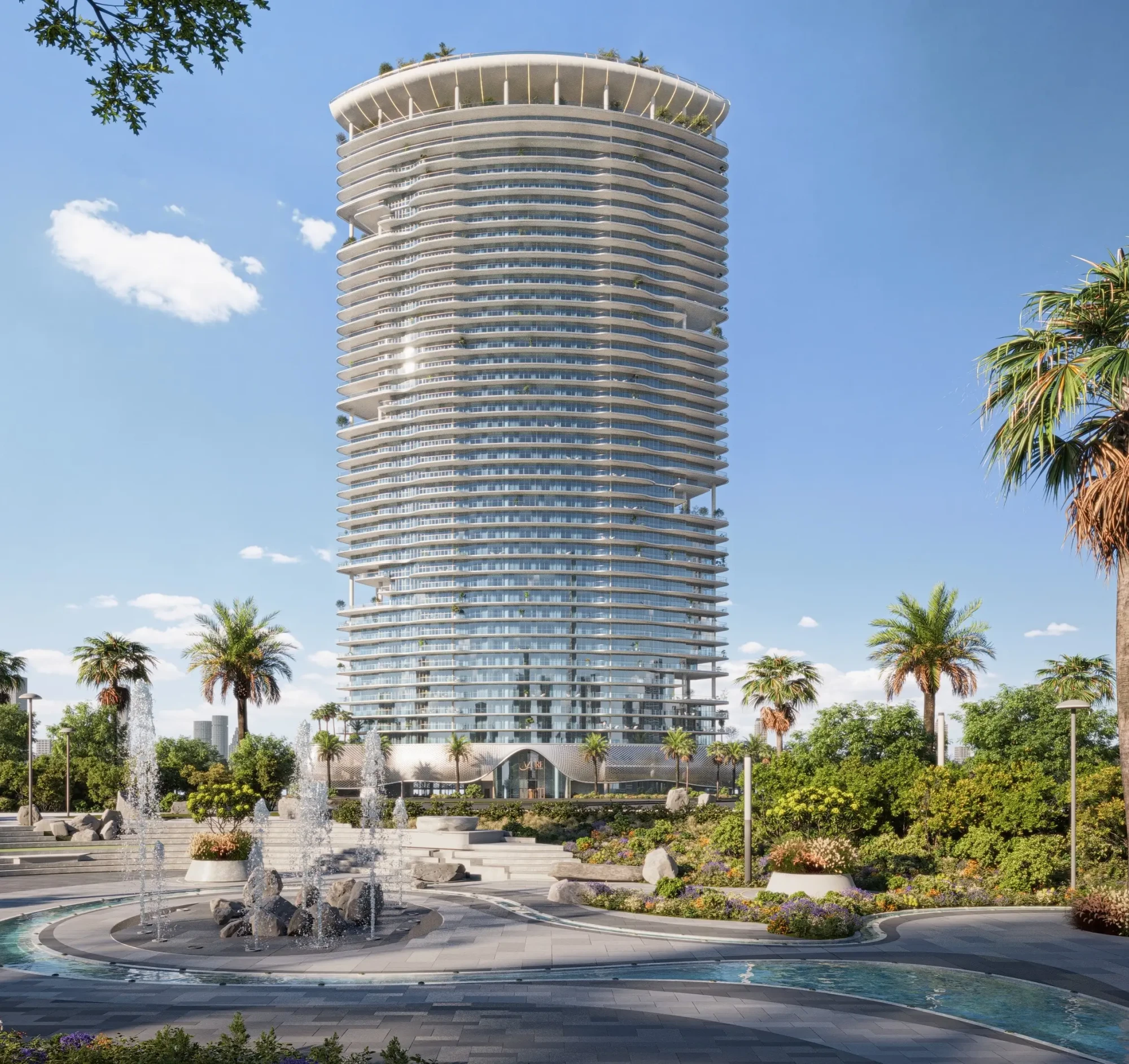 The building’s design reflects modern minimalism infused with organic inspiration. Smooth lines, soft tones, and open façades create a sense of harmony and lightness. The project includes two basement levels, a ground floor, three podium floors, forty residential levels, and a rooftop leisure area with panoramic sea views.
