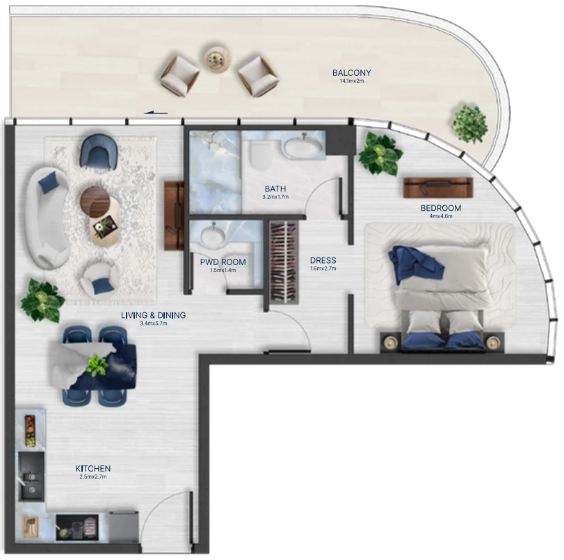 3-r. new flat, 1367 ft² in Radisson Blu Hotel & Residences