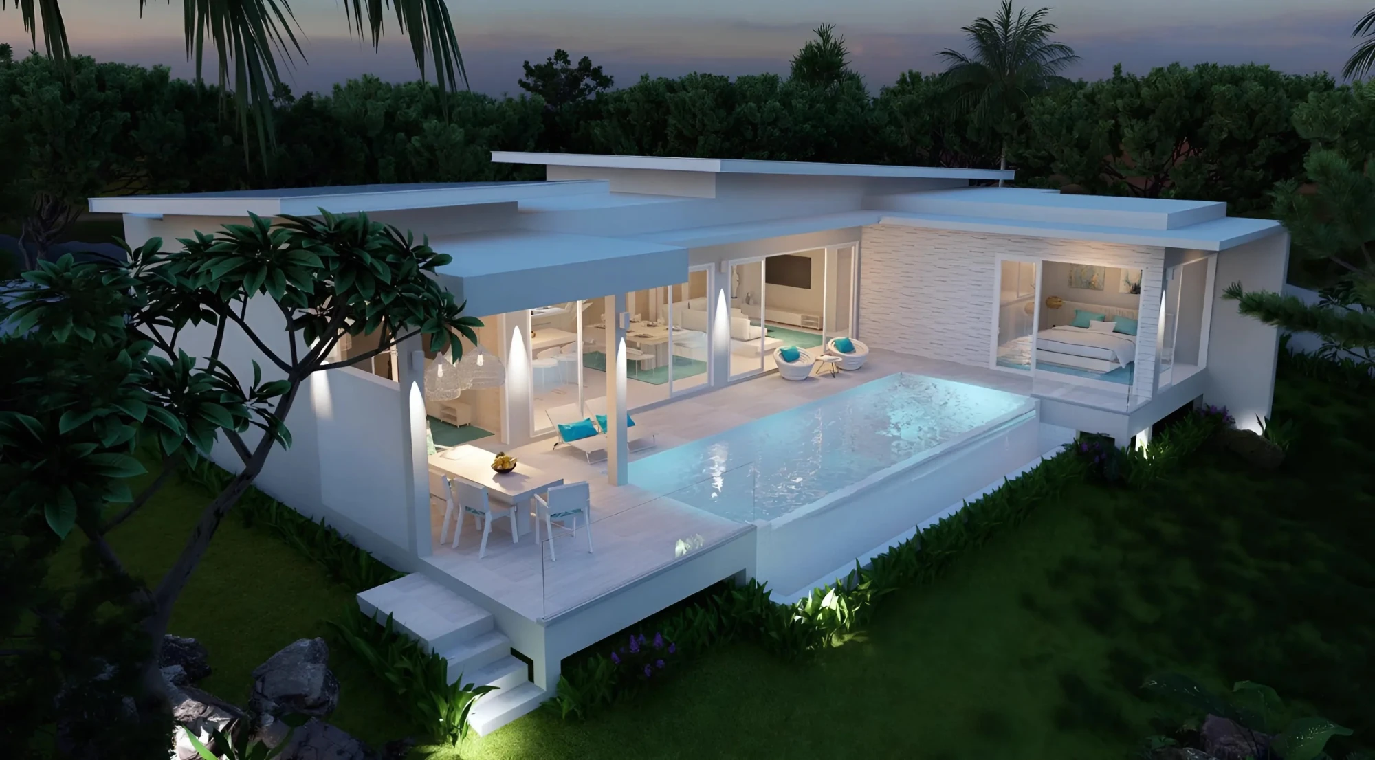 Invest in luxury "Samui Sway" villas with 3-4 bedrooms and a swimming pool, offering exquisite design and sea views on the northeast coast of Koh Samui. High potential for profit and investment.