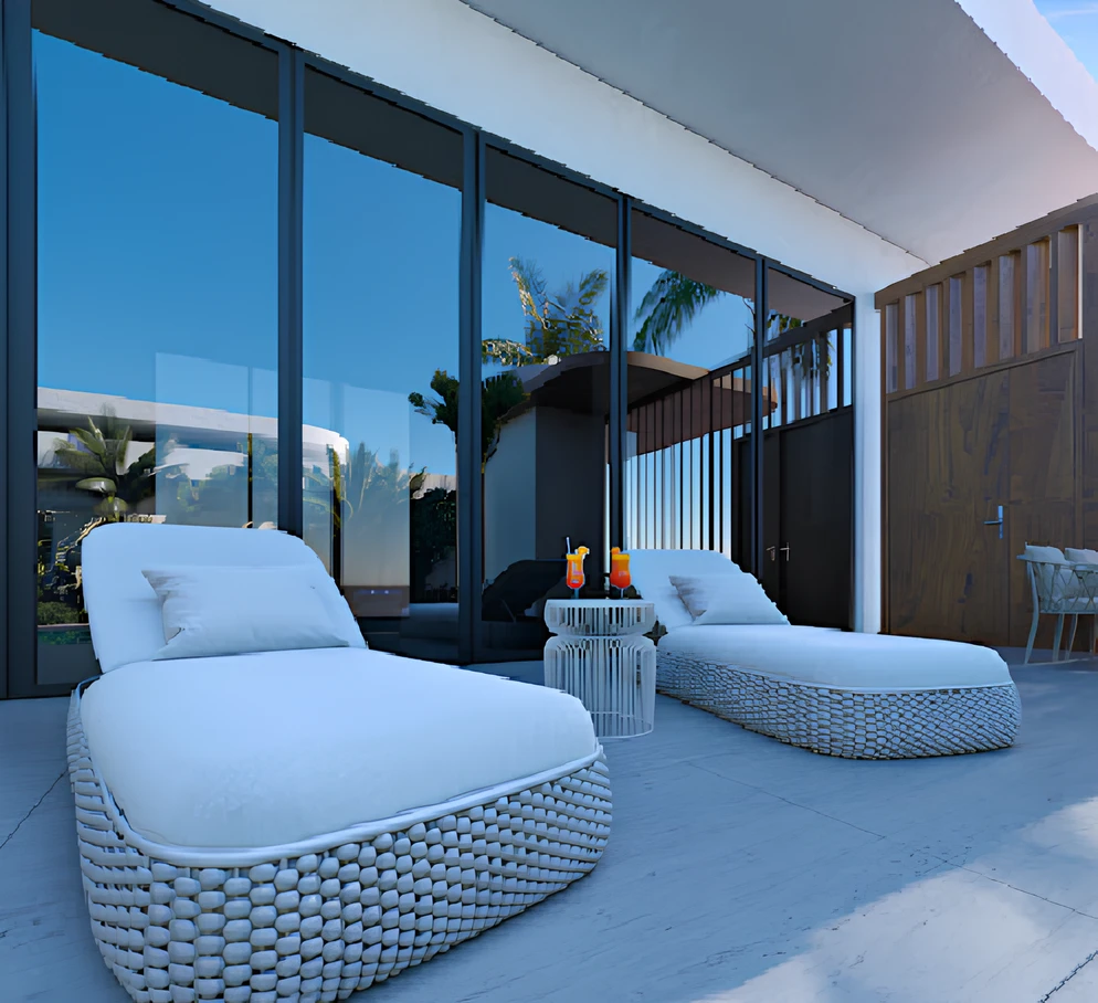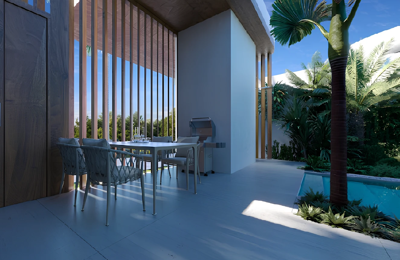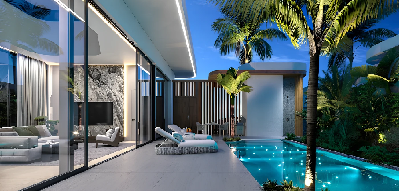 Proxima Villas is a complex of 14 villas in which modernity is combined with tropical greenery.