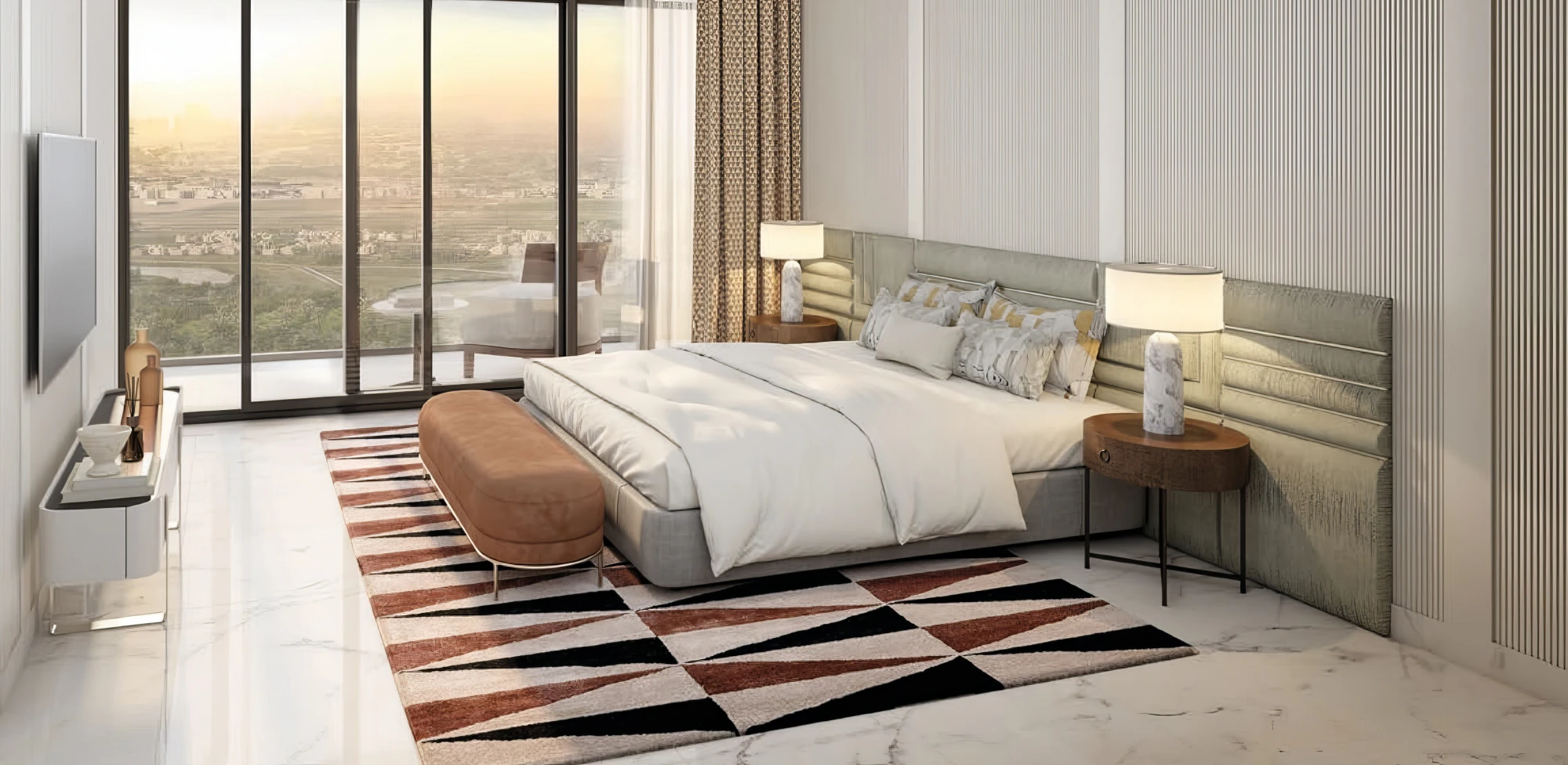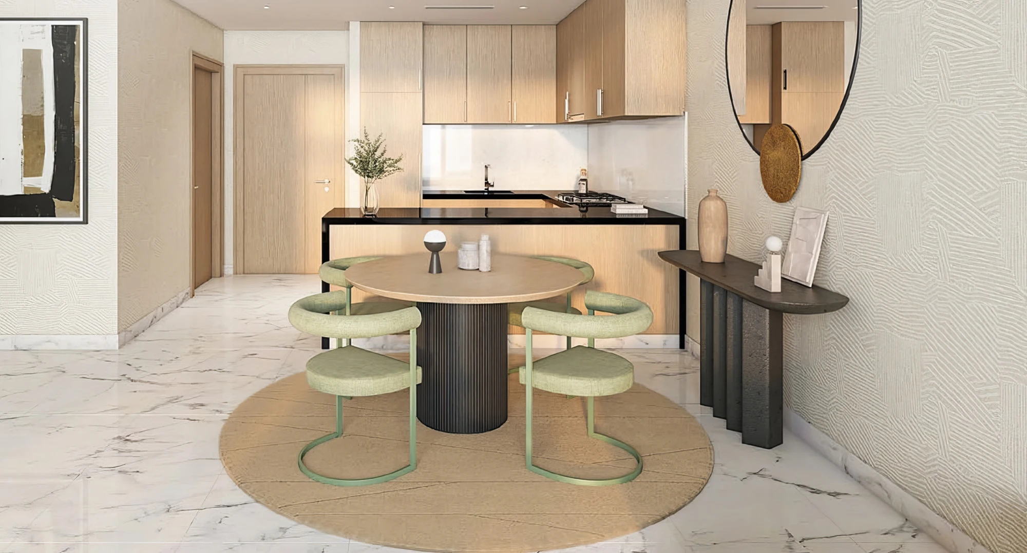 Equiti Gate stands out with its minimalist architecture and elegant façade that reflects modern Dubai aesthetics. Interiors are crafted in neutral tones, featuring premium finishes, contemporary kitchens, and panoramic glazing offering open city and garden views.