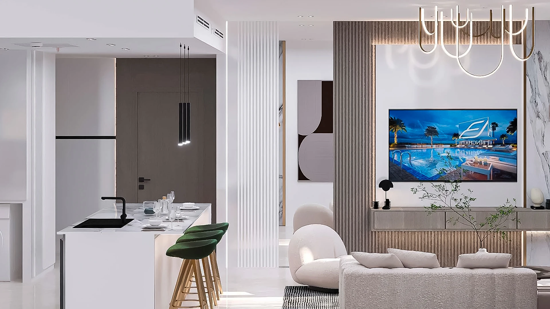 Amenities: swimming pool, gym, children's playground, children's pool, green areas, barbecue area, game room, yoga studio, cafes and restaurants, cinema, co-working space, air conditioning, conference room, security and video surveillance, parking space, park, garden, sauna and steam room, spa area, sports fields, fitness center, gym, dry cleaning.