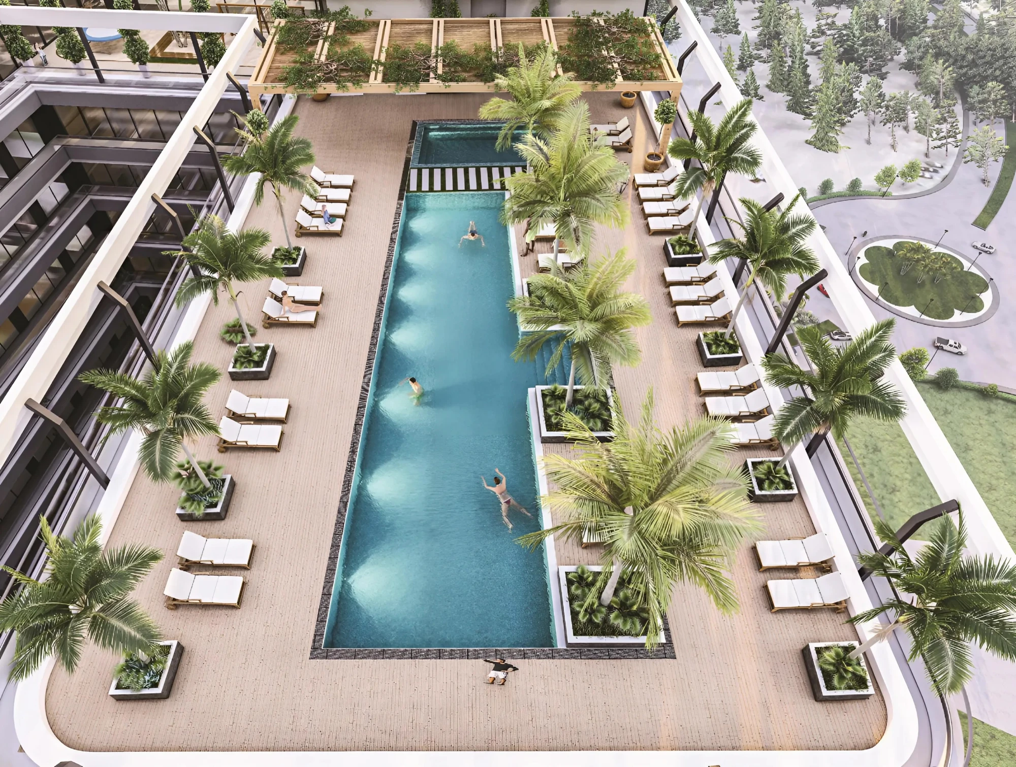 — rooftop swimming pool with lounge areas;