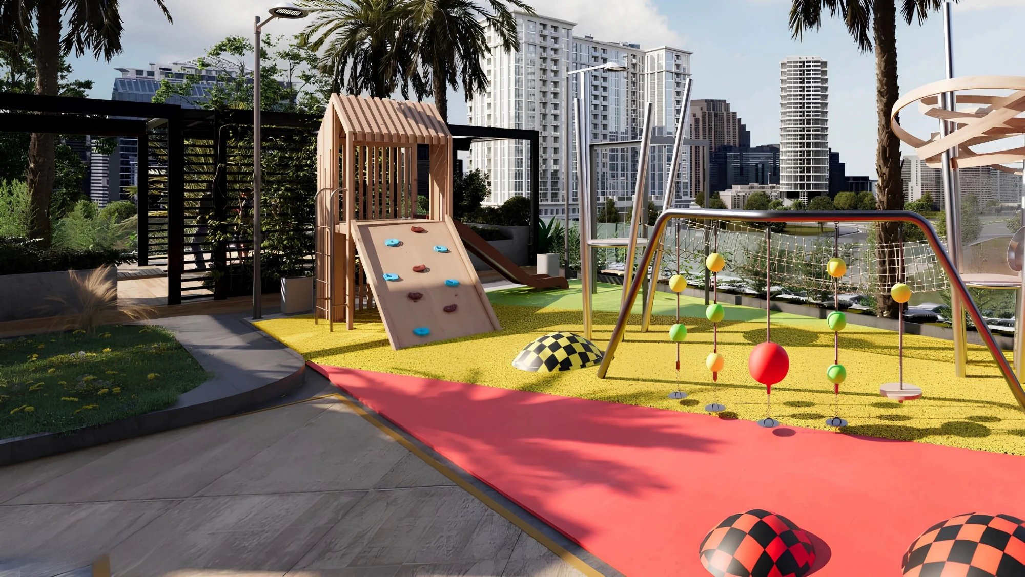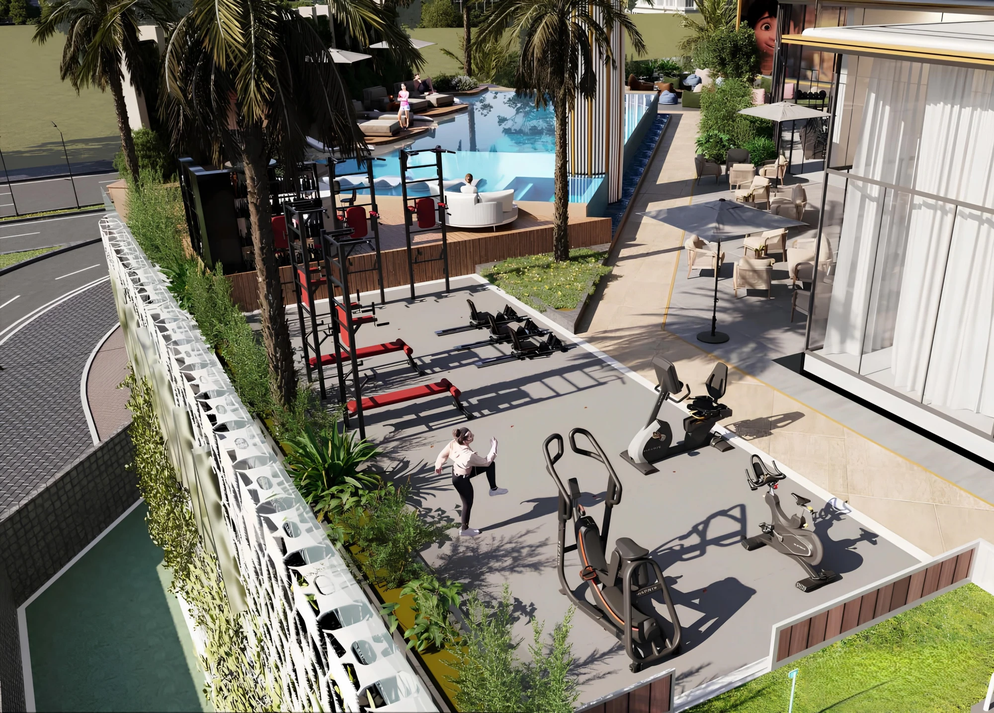 Amenities: swimming pools, open-air cinema, barbecue area, playground, dog park, mini golf, indoor and outdoor gyms, indoor parking, babysitting and cleaning services.