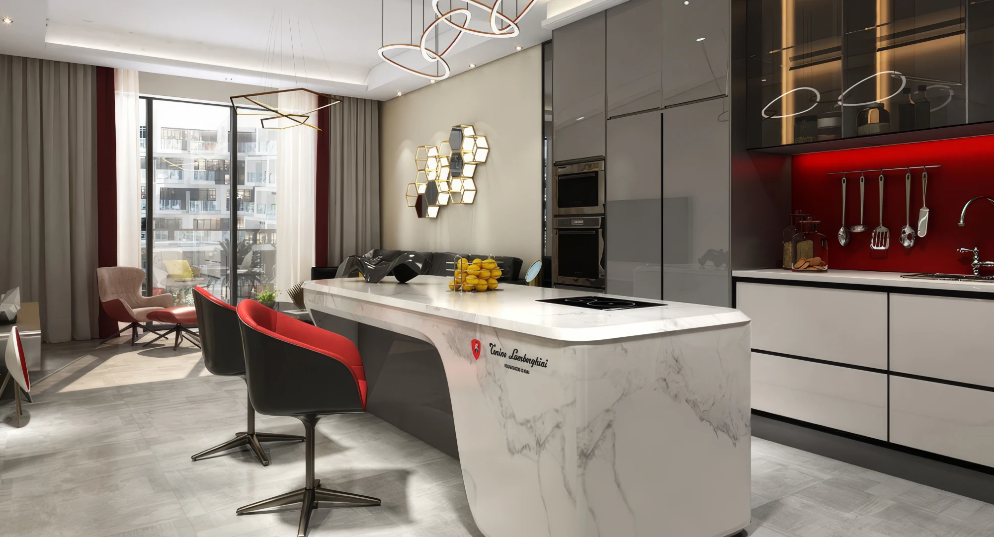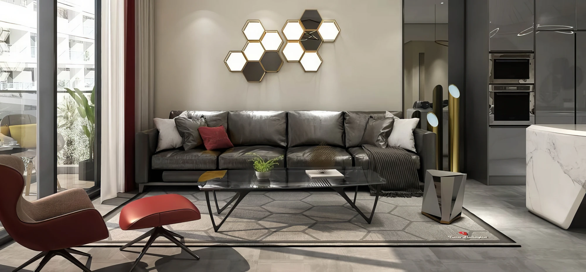 - Open-plan living room with balcony access;
