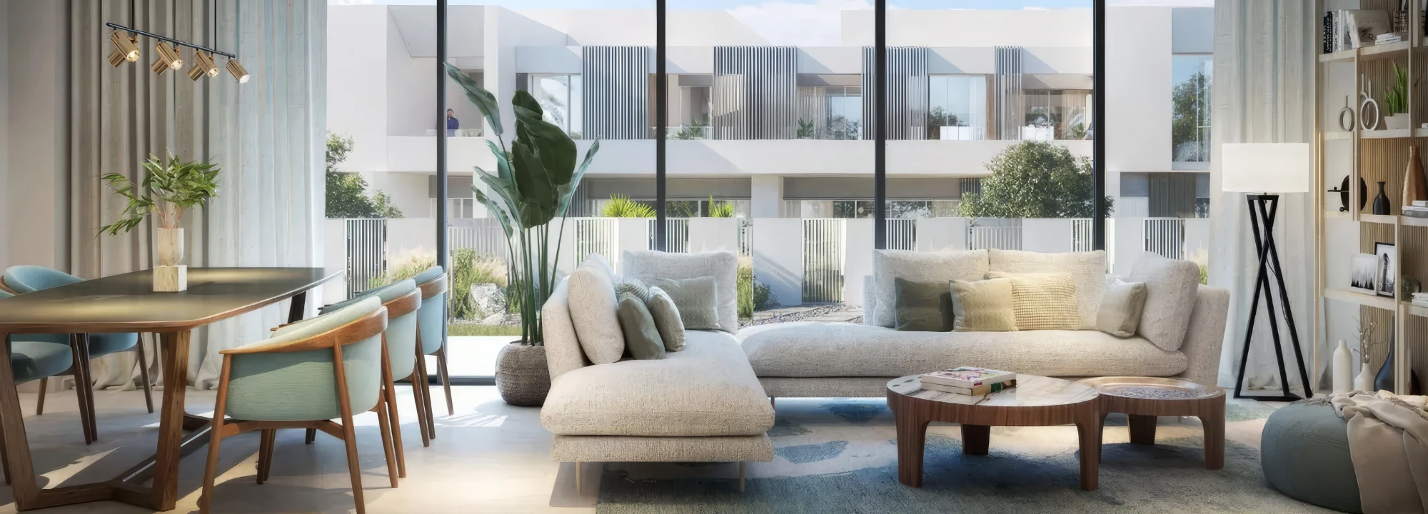 Talia offers modern 3- and 4-bedroom townhouses in three distinctive architectural styles. Homes are designed in light tones with expressive details and large panoramic windows that fill the interiors with natural light. Layouts are carefully planned to ensure family comfort and functionality.