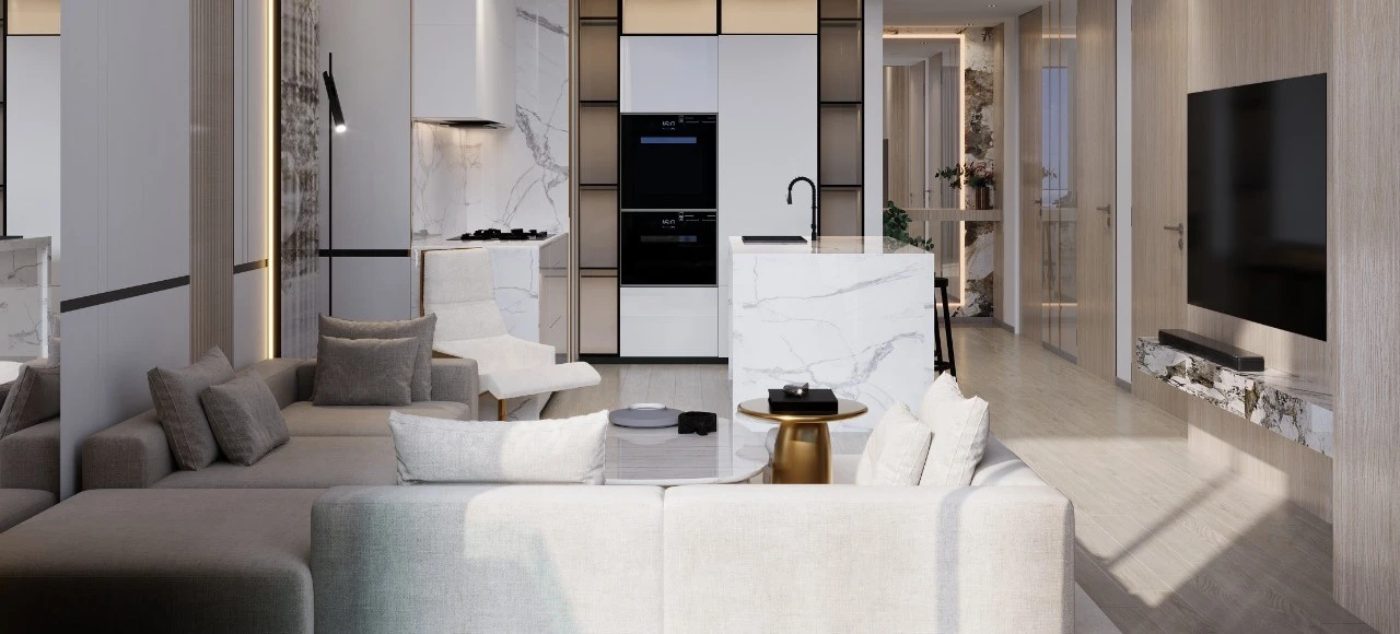 Vestoria Bay is designed with light-filled layouts and panoramic views. Each residence comes fully furnished, equipped with kitchen appliances, and includes a smart home system for modern living.