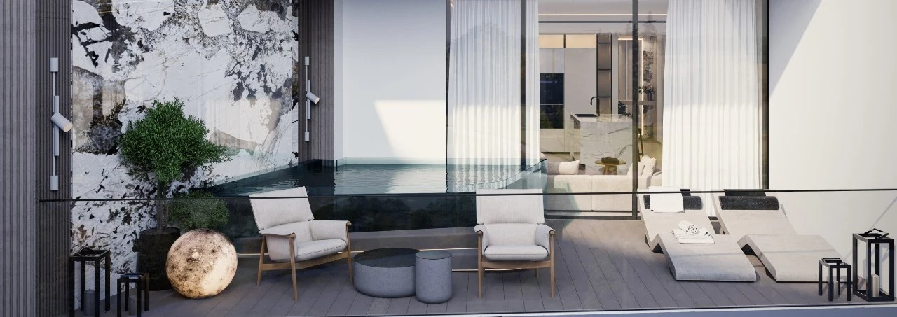 Vestoria Bay is a new residential development on Dubai Islands by Ahmadyar Developments, offering fully furnished apartments, penthouses, and townhouses. Inspired by coastal living, the project features light façades, floor-to-ceiling windows, and spacious balconies with sea views.