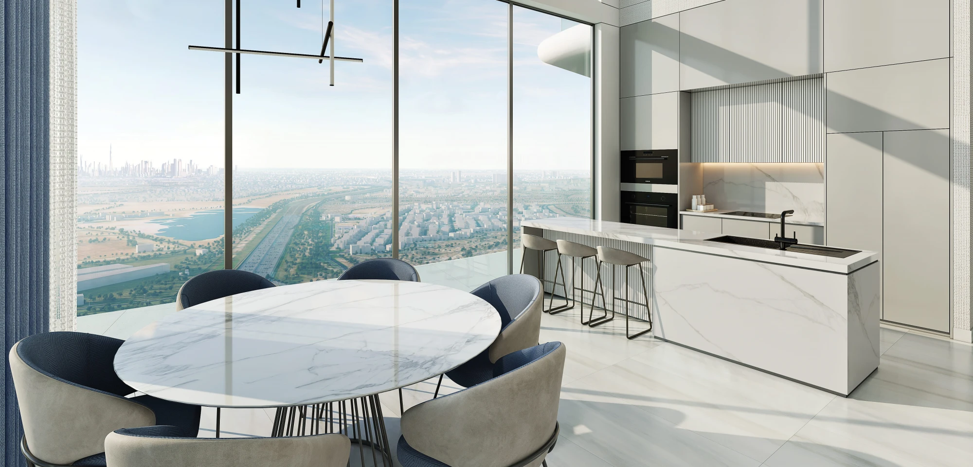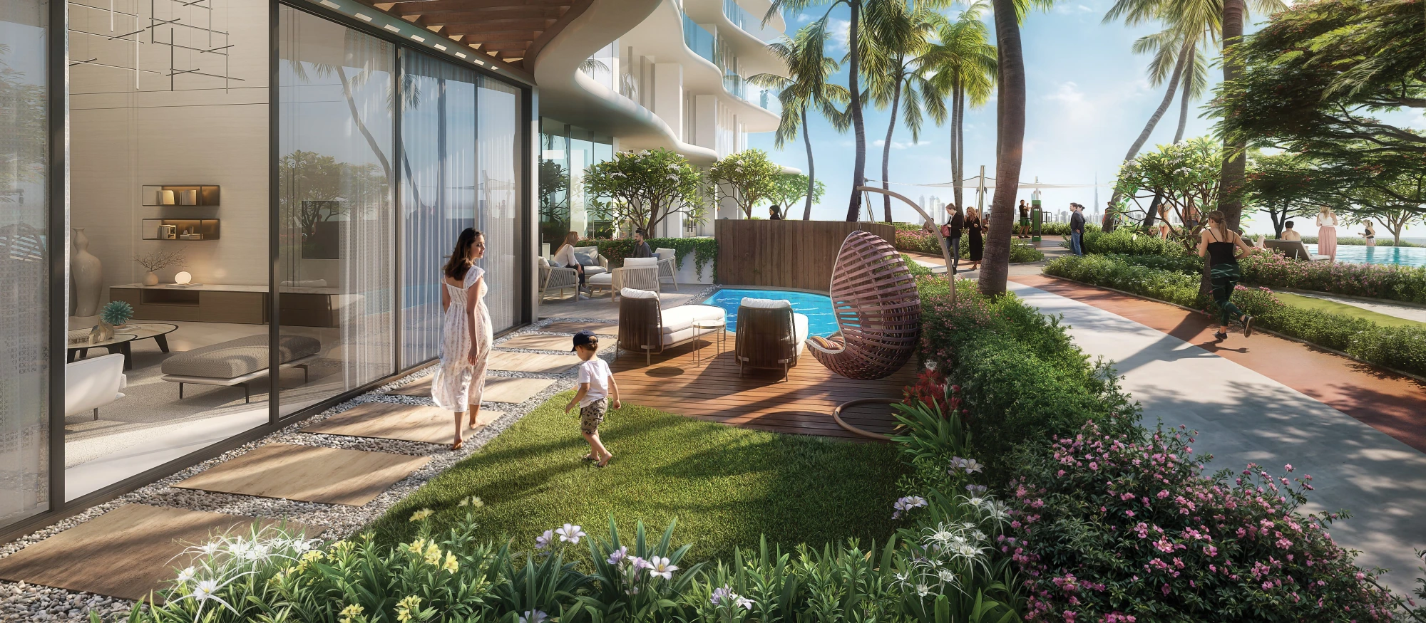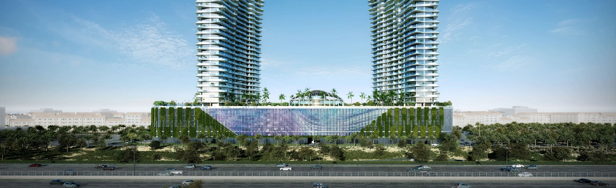 The towers combine sleek façades, elegant lines, and floor-to-ceiling windows, creating a sense of openness. The design integrates natural surroundings with urban convenience, offering a lifestyle centered around water, wellness, and comfort.